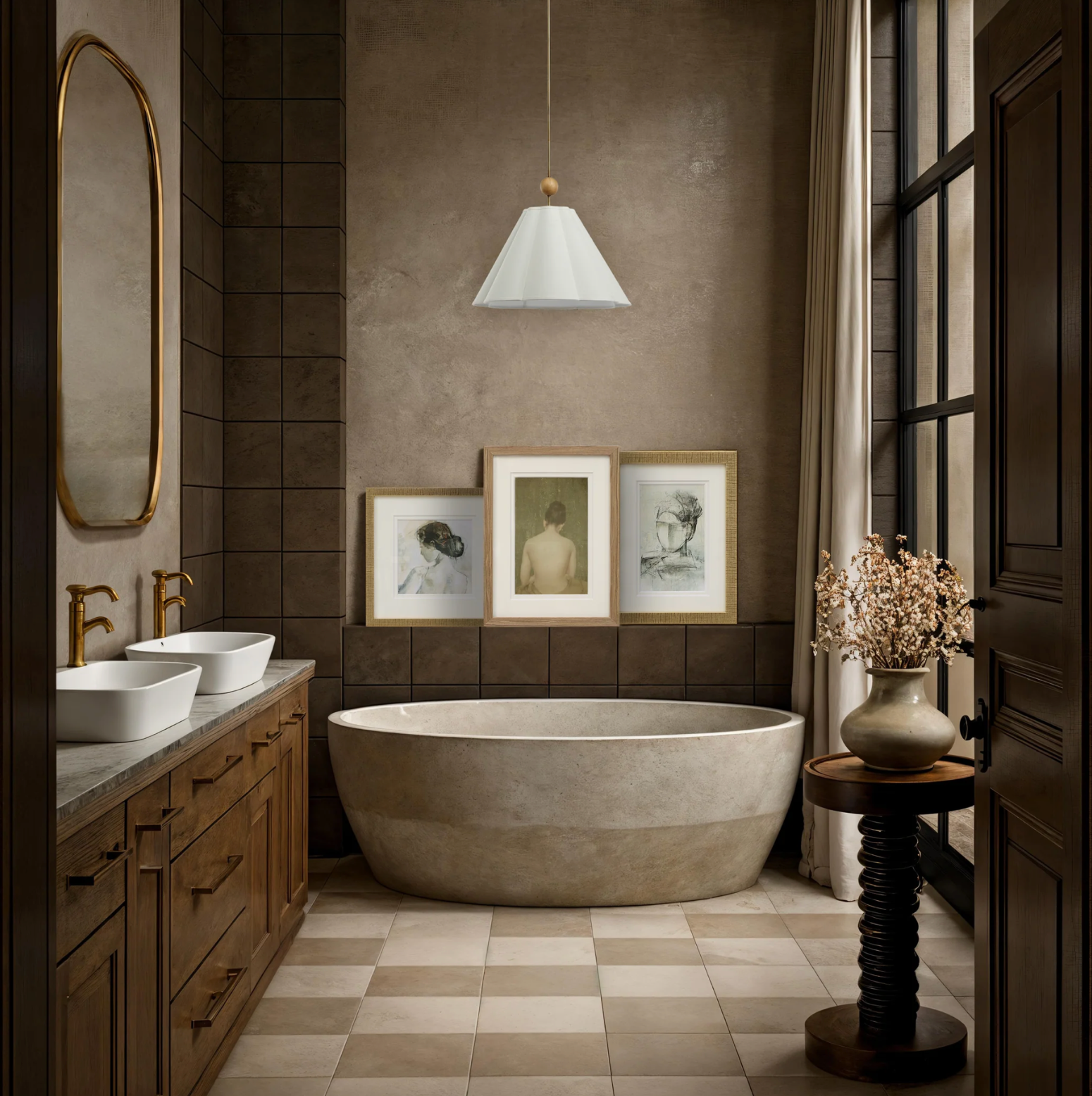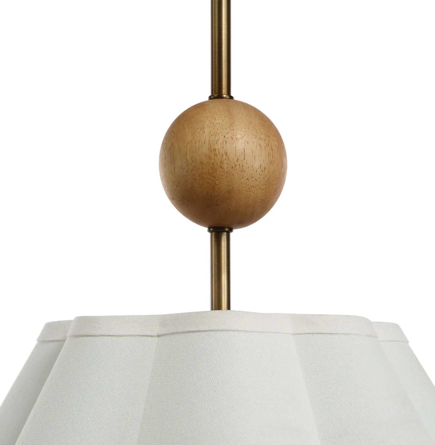 The Ariel ceiling pendant brings sculptural presence to a room, offering a refined take on lighting statements. Its flared matte off-white shade feels modern, intentional and a little bit dainty, while oak and dark antique brass accents add earthy sophistication. At 25 inches wide, it commands attention either as a standalone centerpiece or in multiples.