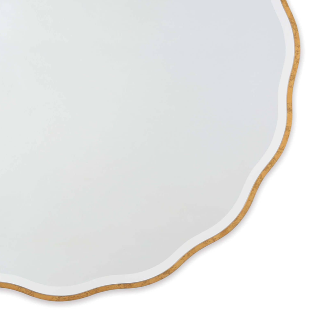 A soft, undulating frame gives this simple beveled mirror modern glam detailing. Consider hanging this in a hallway or above a console table as a finishing touch.