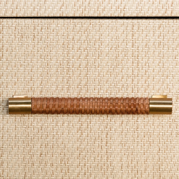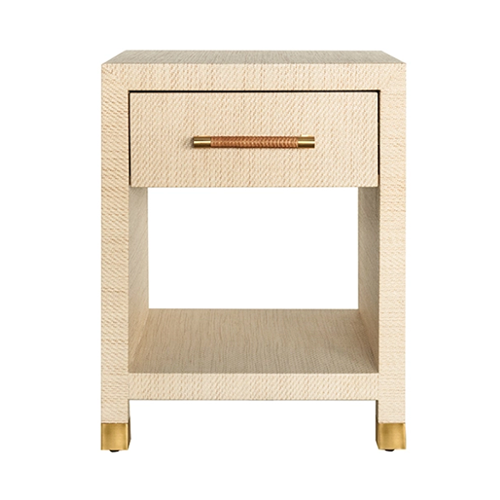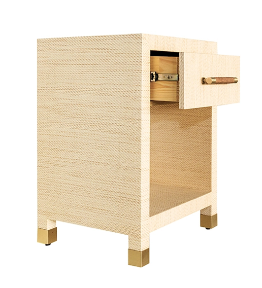 ONE DRAWER SIDE TABLE WITH RATTAN WRAPPED HANDLE IN NATURAL GRASSCLOTH