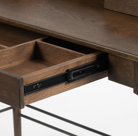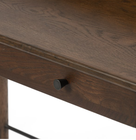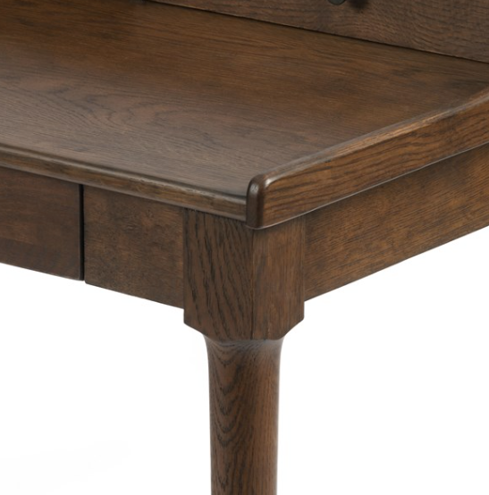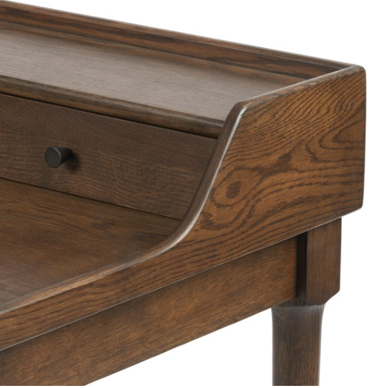 Simple beauty in a refreshed writing desk. Dark-toasted oak's rich brown finish speaks to mid-century inspiration, while plenty of storage meets the needs of a modern office.