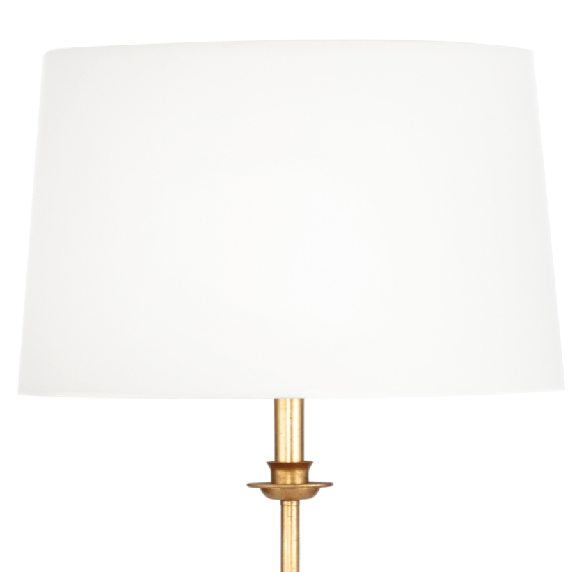 Add elegance and ambiance to your home with the Fairgate Floor Lamp. With a gold-leaf finished body and a natural alabaster stone base, this floor lamp is simply beautiful. A natural linen shade completes the refined look, atop a delicate candle cup accent. Place this elegant floor lamp in your living room or home office for a touch of sophistication.