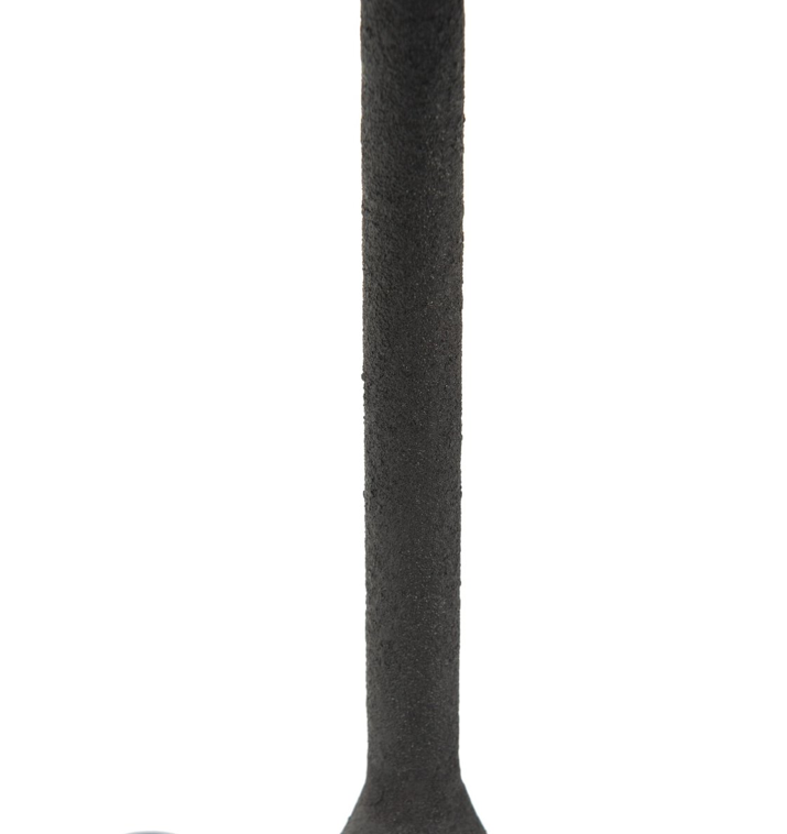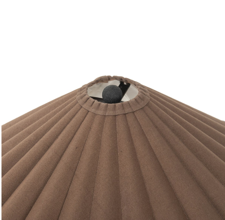 Textures and deep hues unite for this table lamp's beautiful glow. The overscale scalloped shade features a dark canvas exterior covering an antiqued brass interior, and wrought iron pull chains adjust each lightbulb in Baroque-era form.