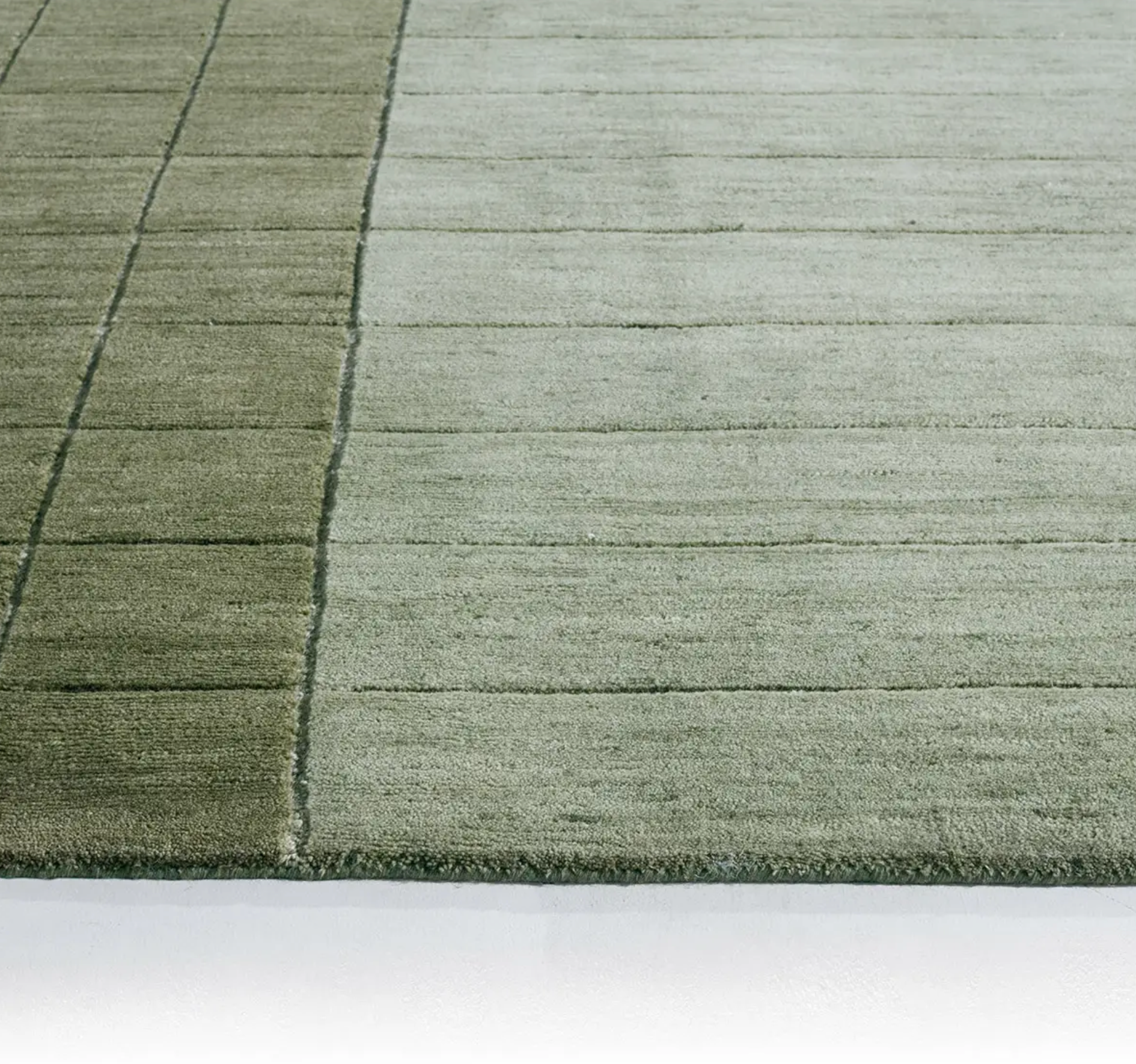 The Dommel design from the Linear Motion collection offers a contemporary geometric statement, grounding any space in a sophisticated Green palette. Handknotted with a Nepalese technique from lustrous Afghan wool, its high low pile creates a textural grid and stripes, providing inviting depth, softness, and a subtle sheen.