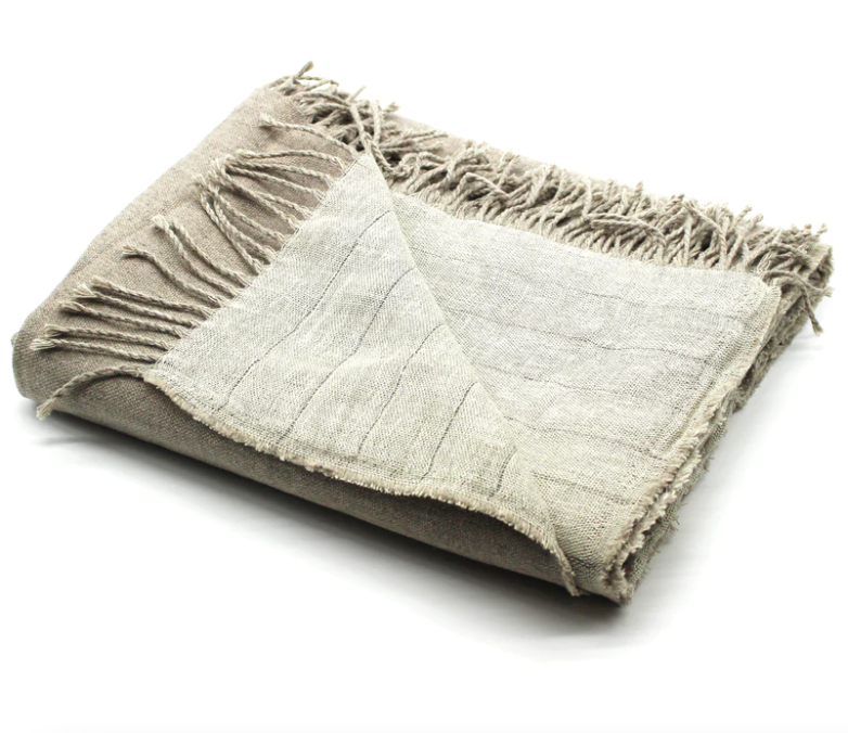 As the heat of the long summer days fade to the subtle chill of the fall, you’ll reach for this new Linen/Merino Wool Reverse Throw.