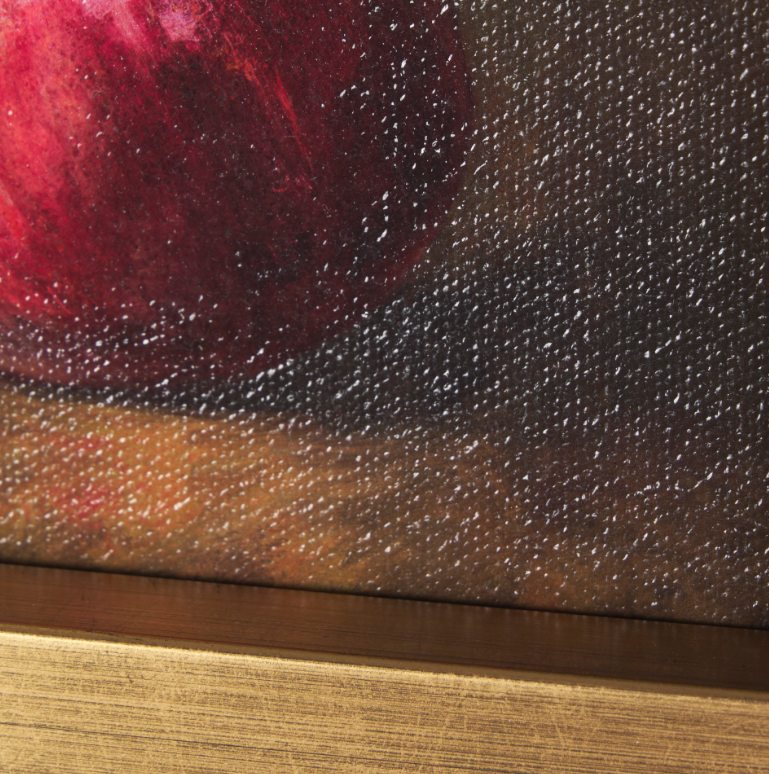 Hand-embellished framed acrylic print on canvas.