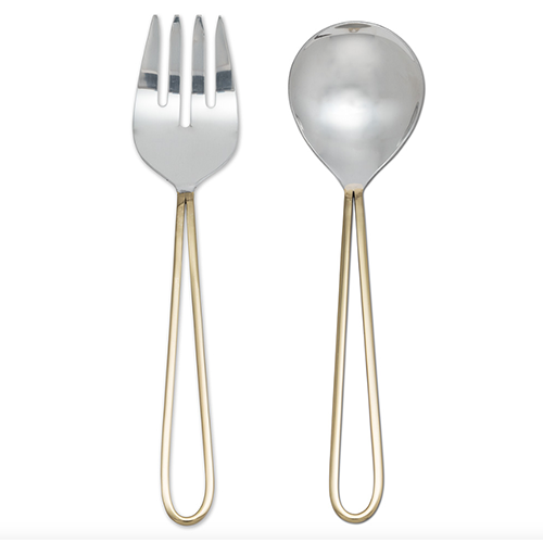 This set of loop-handled salad servers makes a sophisticated complement to any get-together. Made of brass and stainless steel, the minimal design of these salad servers is perfect for serving up garden salads, Caesars and more.