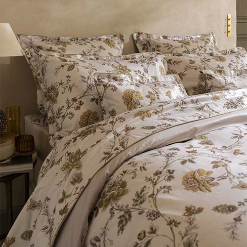 The Maussane duvet cover embodies the timeless elegance of Provençal fabrics reinterpreted with a modern touch. Its floral pattern, inspired by Indian designs, features large stylized flowers connected by a network of vines and foliage, spreading with remarkable finesse across the entire surface. The luminous background in organic cotton satin highlights the delicate shades of the palette: a gradient of soft pinks and greens in the Rosée version, and a spring-like freshness in the Tilleul version. The highly precise digital print adds visual depth that captures the light, revealing the richness of the details.