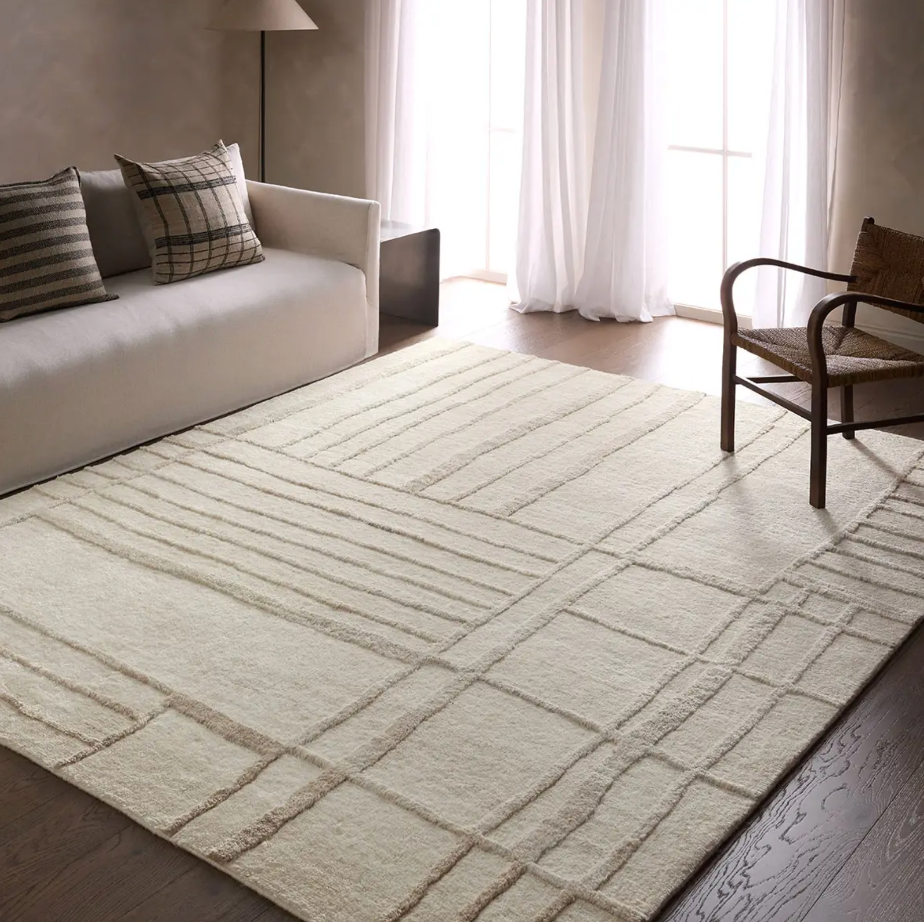 Crafted from a luxe blend of wool and tencel silk, the Omara collection brings refined texture and subtle sheen to both modern and traditional interiors. The Yamina design features a hand-drawn linear motif in a versatile neutral palette, accentuated by a high-low pile that adds dimension and visual interest.