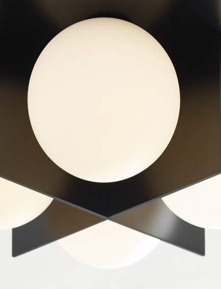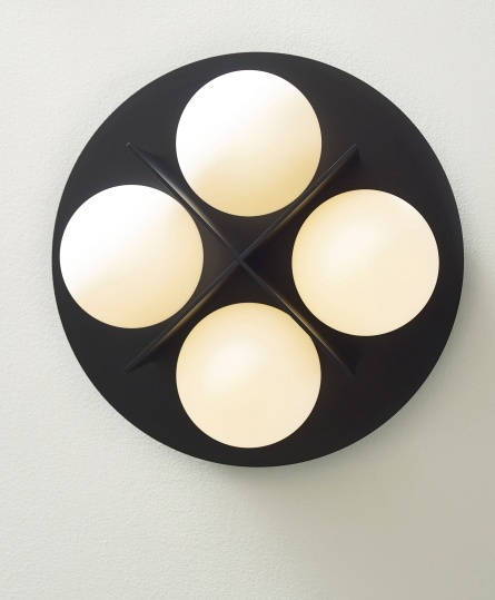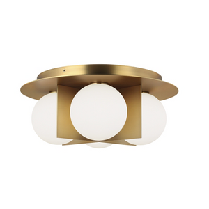 - Inspired by Mid-Century modern art, the Orbit Flush Mount features a circular canopy that supports alternating metal squares and four frosted spheres of light