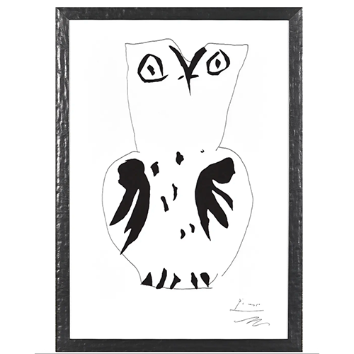 This whimsical Owl ink drawing by Pablo Picasso will add character to any contemporary decor. Framed in a textured black frame.