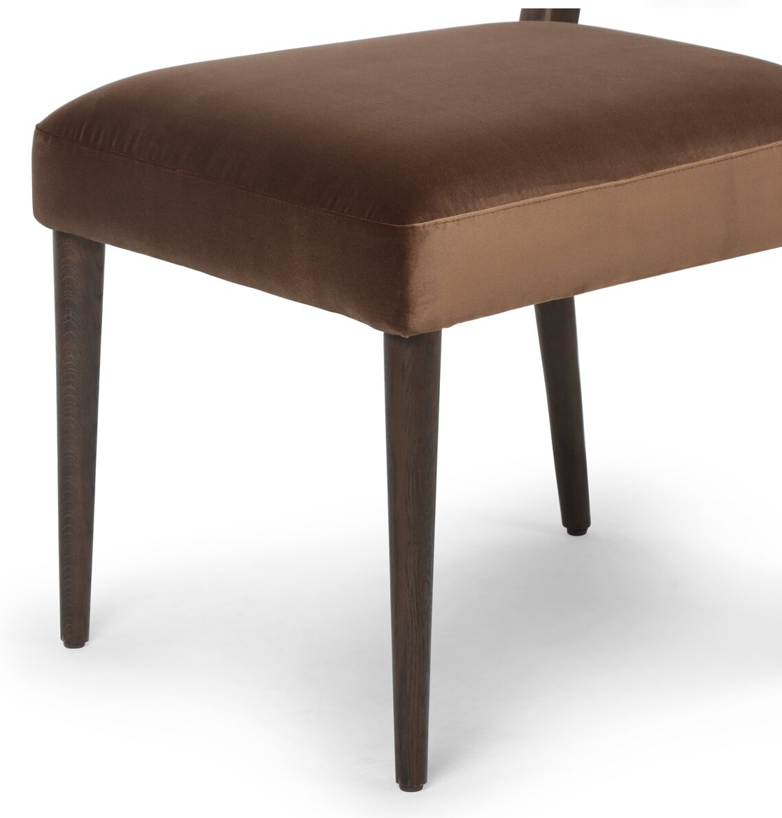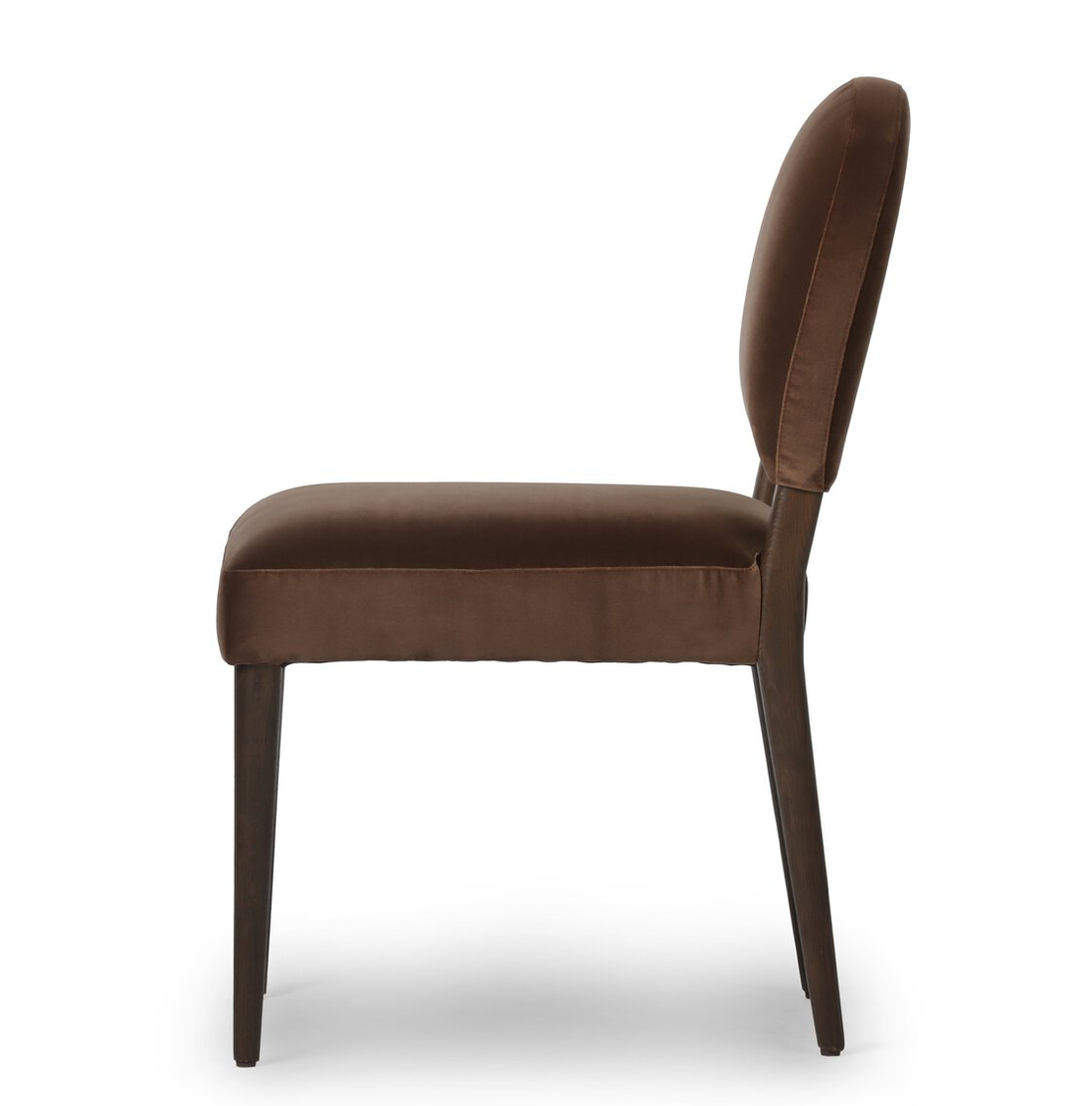 A heritage design gets a modern twist. Simple tapered legs of warm oak mark this dining room chair's traditional form, while an arched seat back upholstered in sumptuous blend upholstery updates this comfortable seating style.