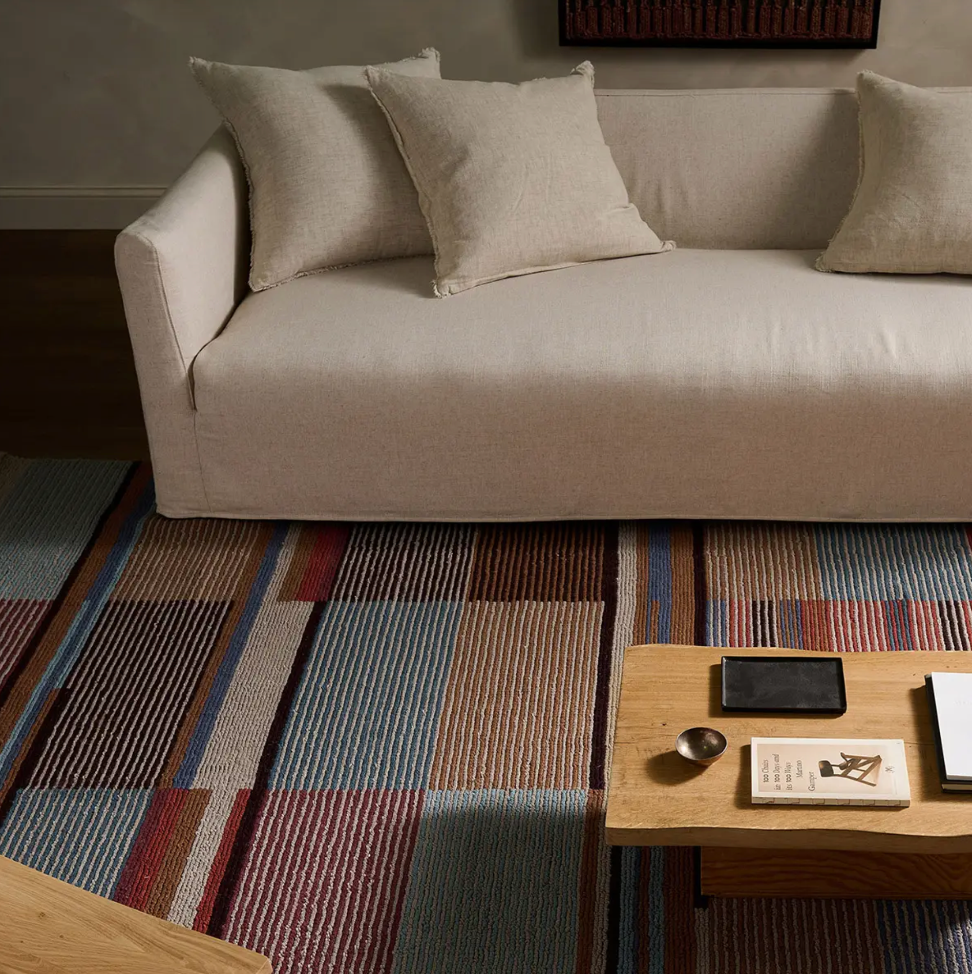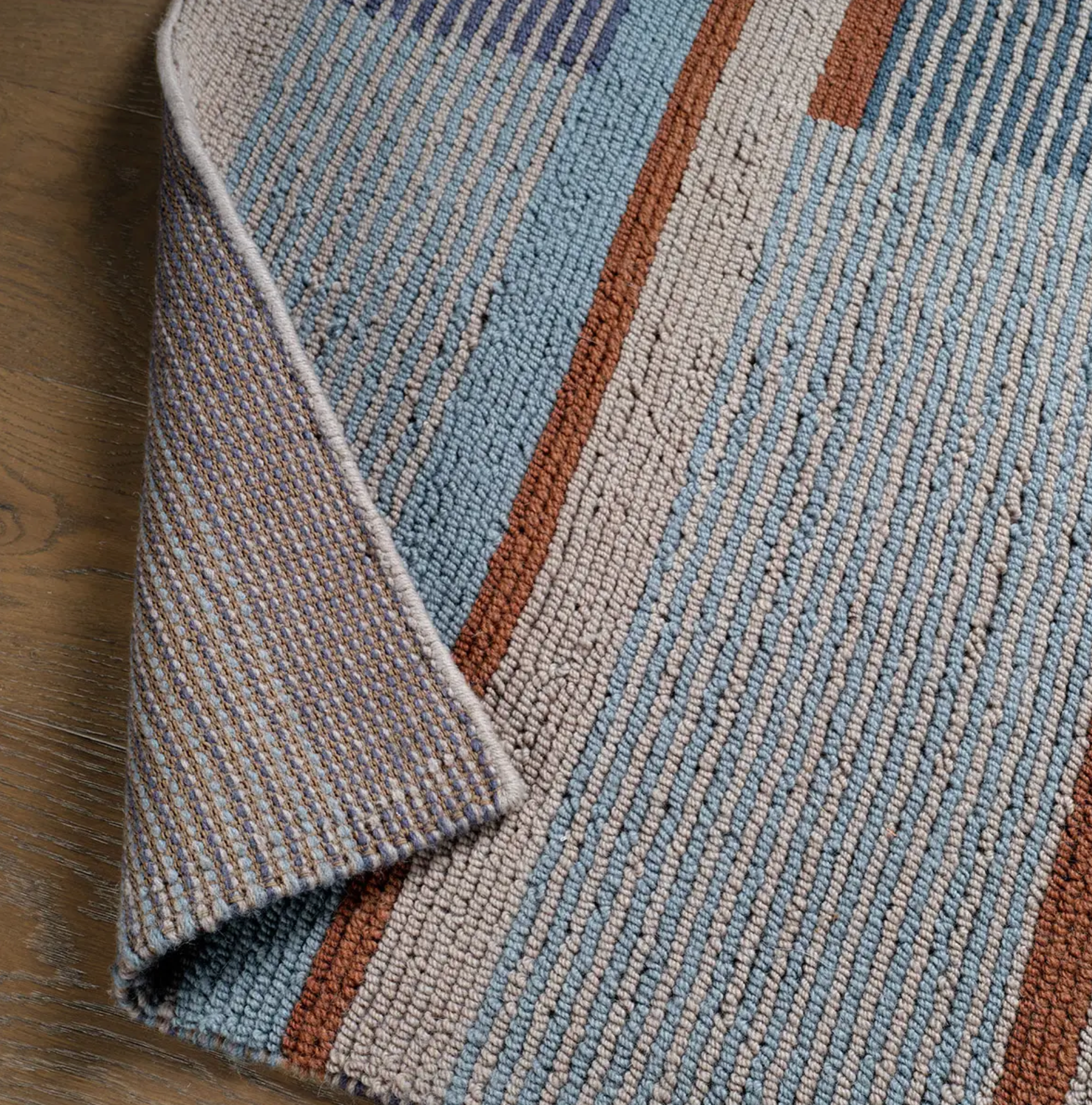 The Aerith design from the Woven Construct collection creates a compelling visual experience, boasting a multi color modern palette. This design features bold color blocked patterns on an invitingly soft looped pile, handcrafted by artisans in India from a durable wool and cotton blend.