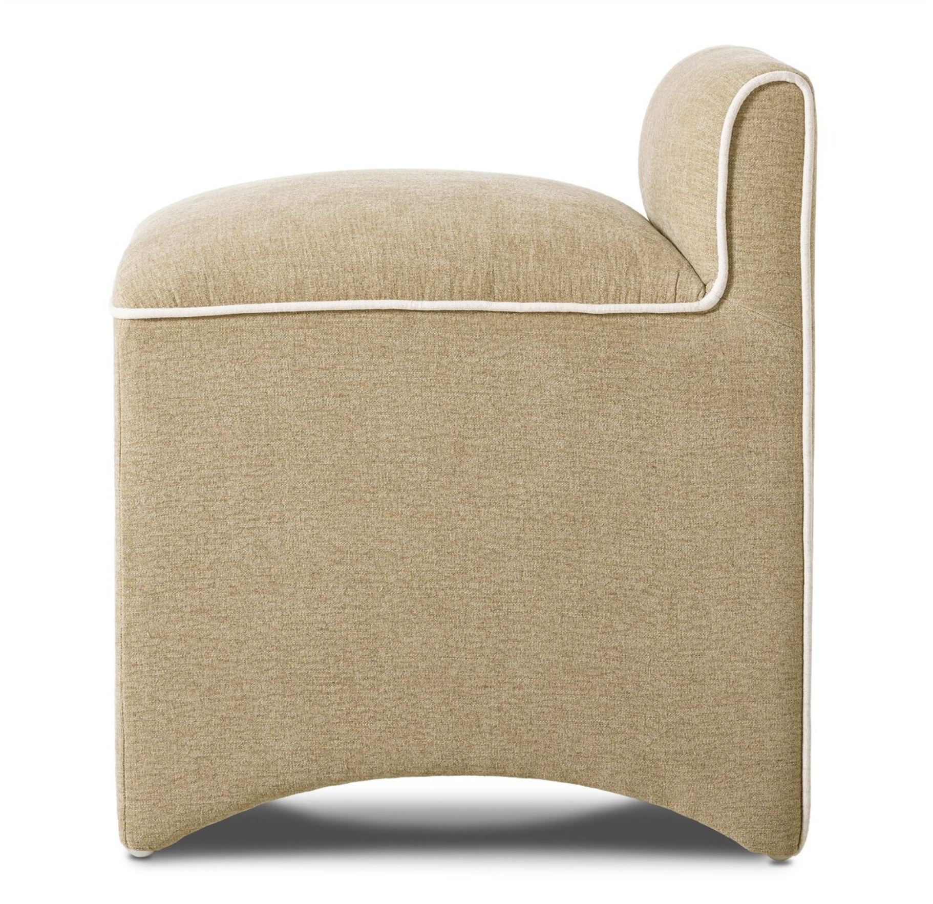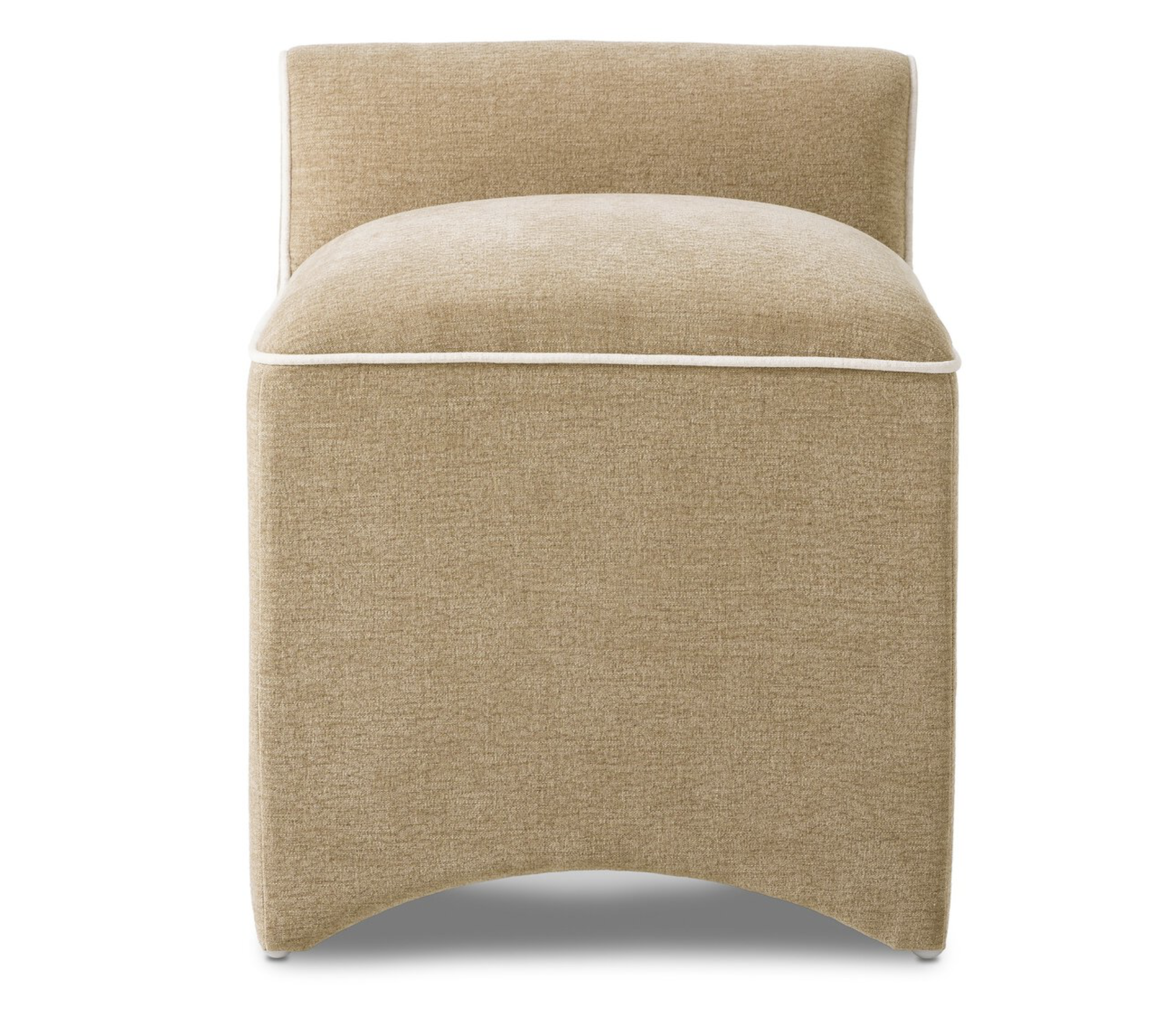 Add a touch of new traditional to any room with an accent stool upholstered in a flax/linen fabric featuring an arched base and piping detail.