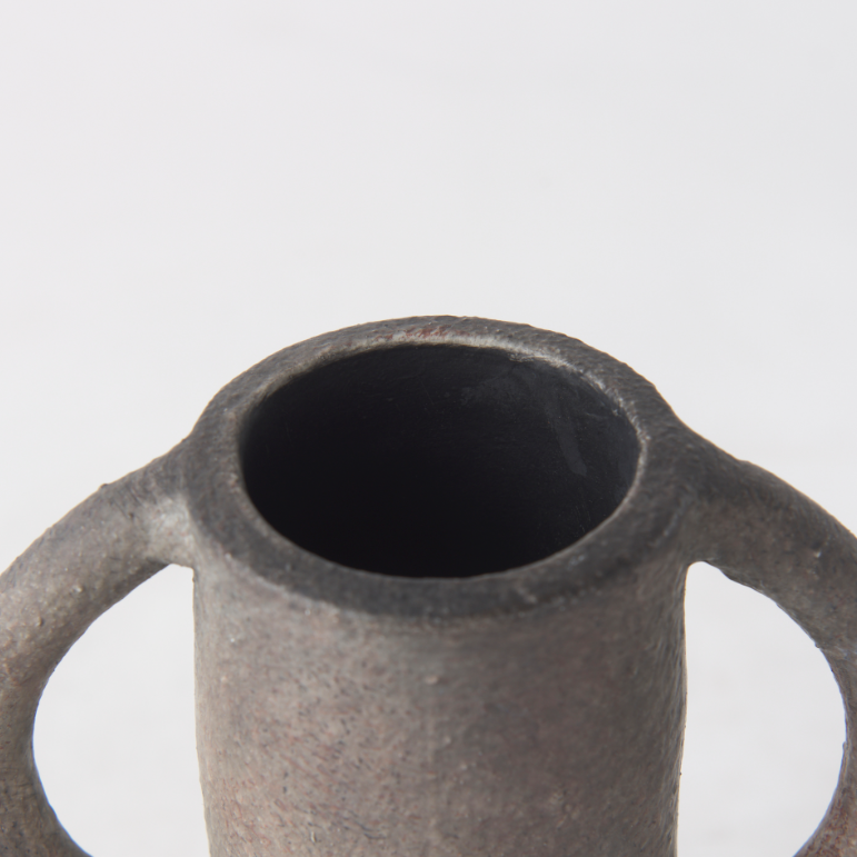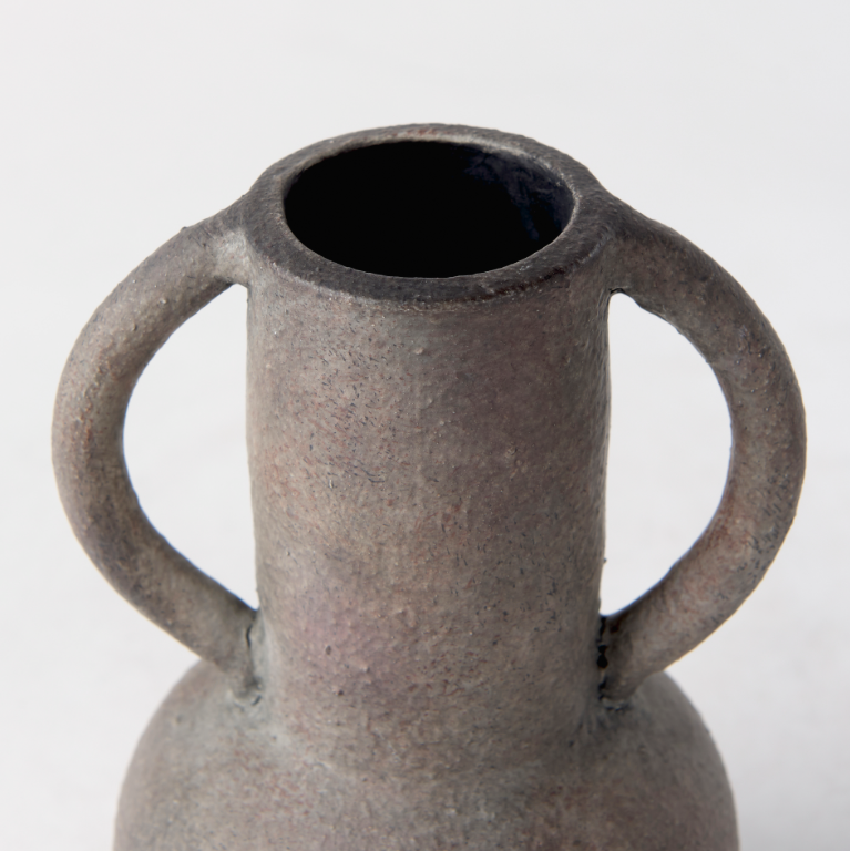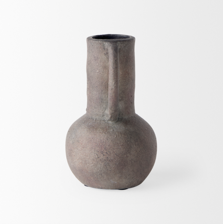 The mix of cool and warm tones brings out a raw, earthy clay feel to the design.