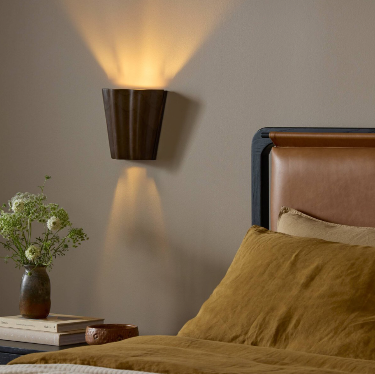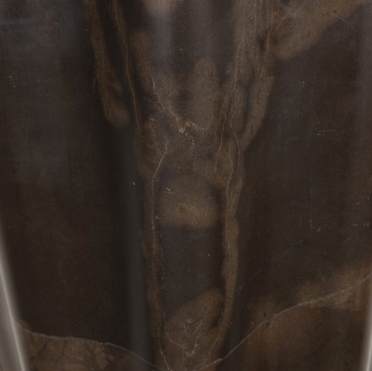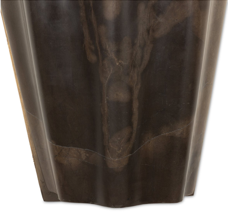 Turned Italian marble in a curved scalloped shape directs the light beautifully. The sculpted stone's organic tones and rubbed bronze back plating make for high-quality, décor-driven detail.