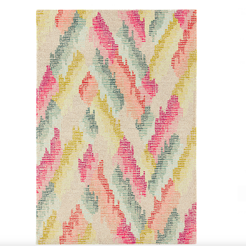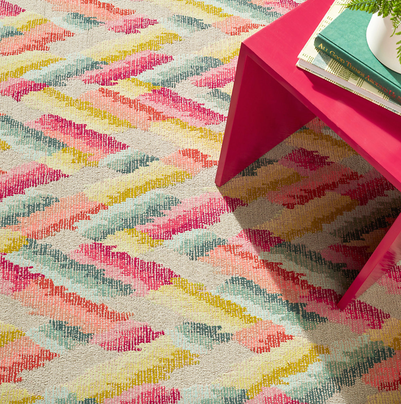 Inspired by an original vintage painting, this rug is both hand-tufted and hand-hooked to create an abstract chevron pattern. Crafted from a durable, naturally stain-resistant soft wool, it's perfect for high-traffic areas like living rooms, kids' rooms, staircases, and hallways.