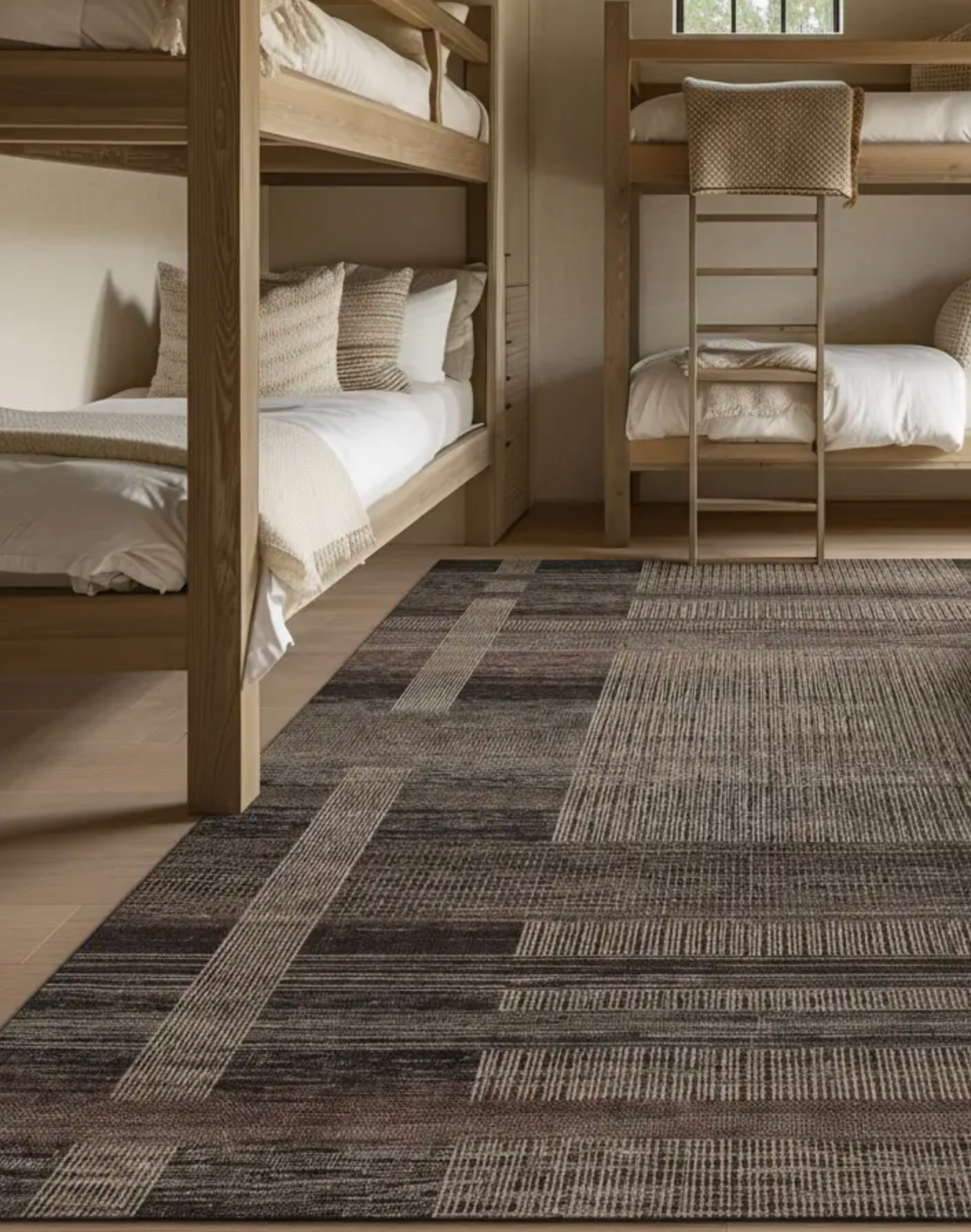 The Reham design from the Centenary collection delivers a sophisticated abstract geometric aesthetic, thoughtfully handcrafted by artisans using traditional Persian knotting techniques. A compelling palette of rich brown and inviting tan beige earth tones creates a modernist geometric layout, showcasing the enduring beauty and durable pile comprised of afgan wool.