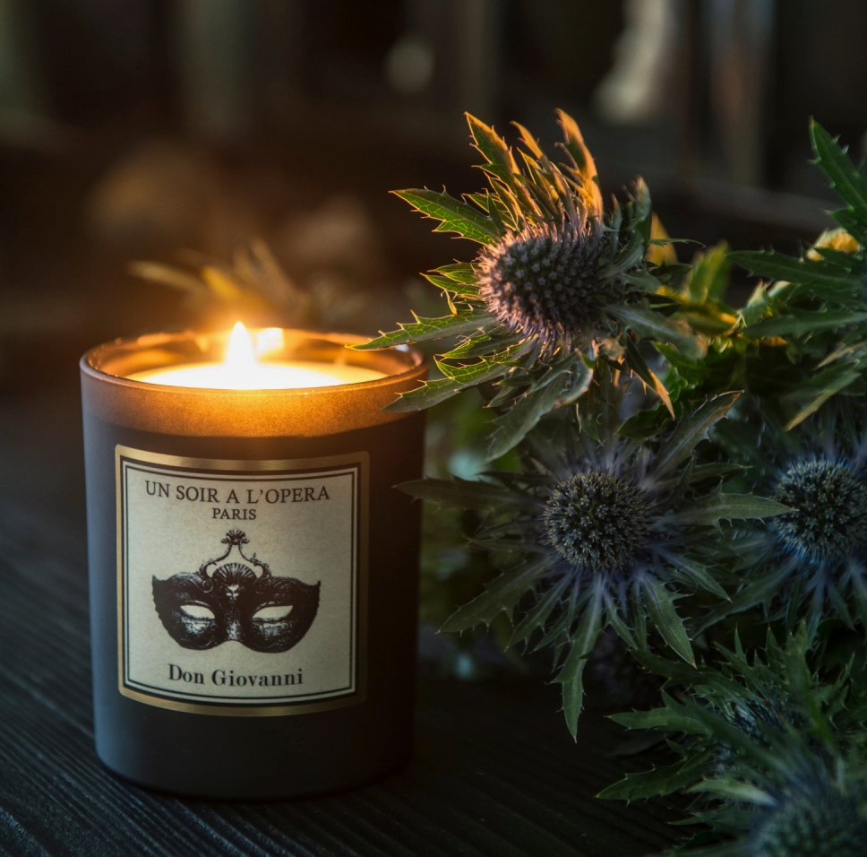 An original and 100% plant-based candle made in France. This decorative and elegant Don Giovanni candle is for anyone who appreciates bold fragrances. Inspired by the opera Don Giovanni, its incense scent with woody notes and marine top note evoke the passionate and mysterious atmosphere of this famous work by Mozart and transport you through the romantic canals and majestic palaces of Venice.