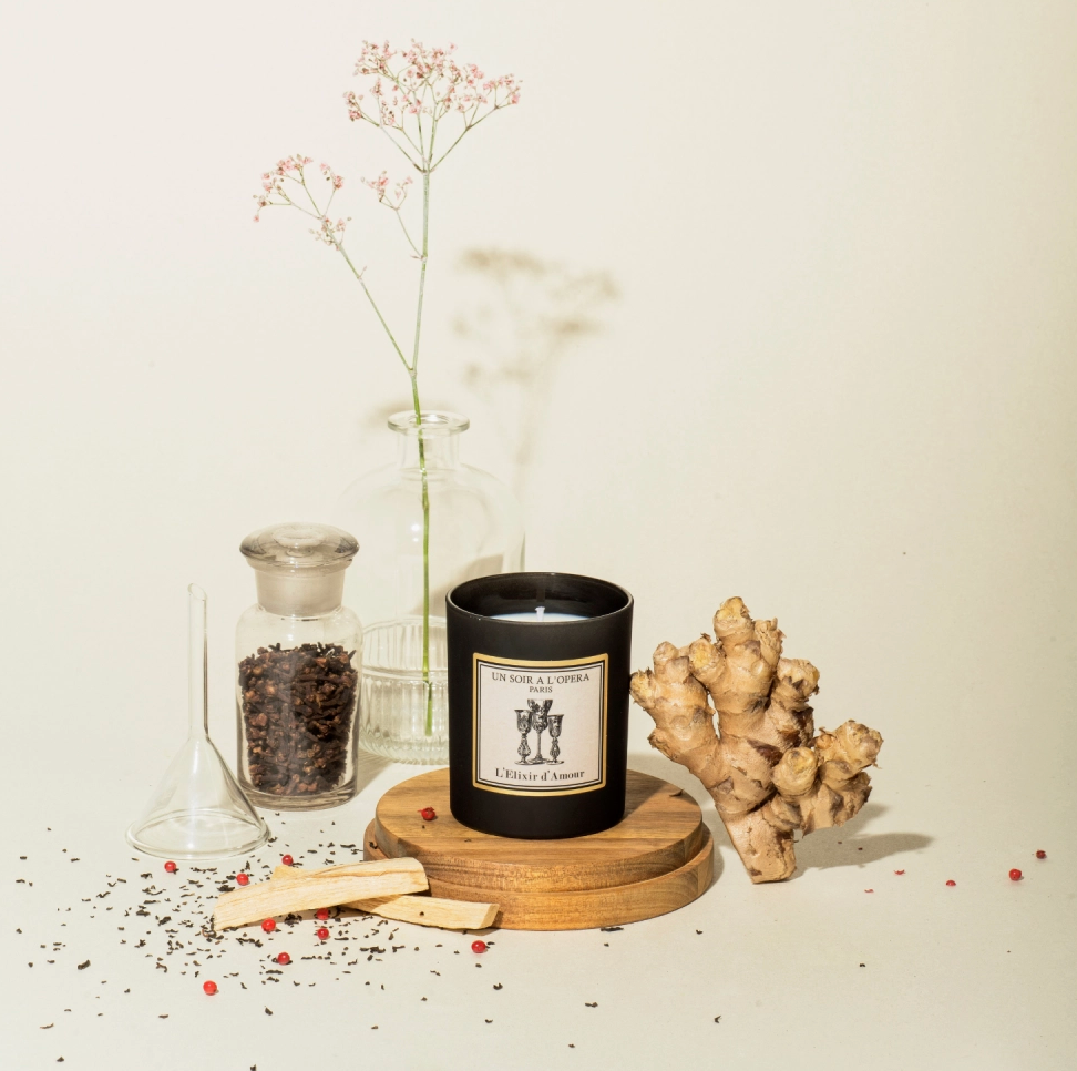 Original candle, 100% plant-based, made in France. Donizetti's charming opera, "The Elixir of Love," inspires a fragrance that celebrates the joyful and touching quest for true love.