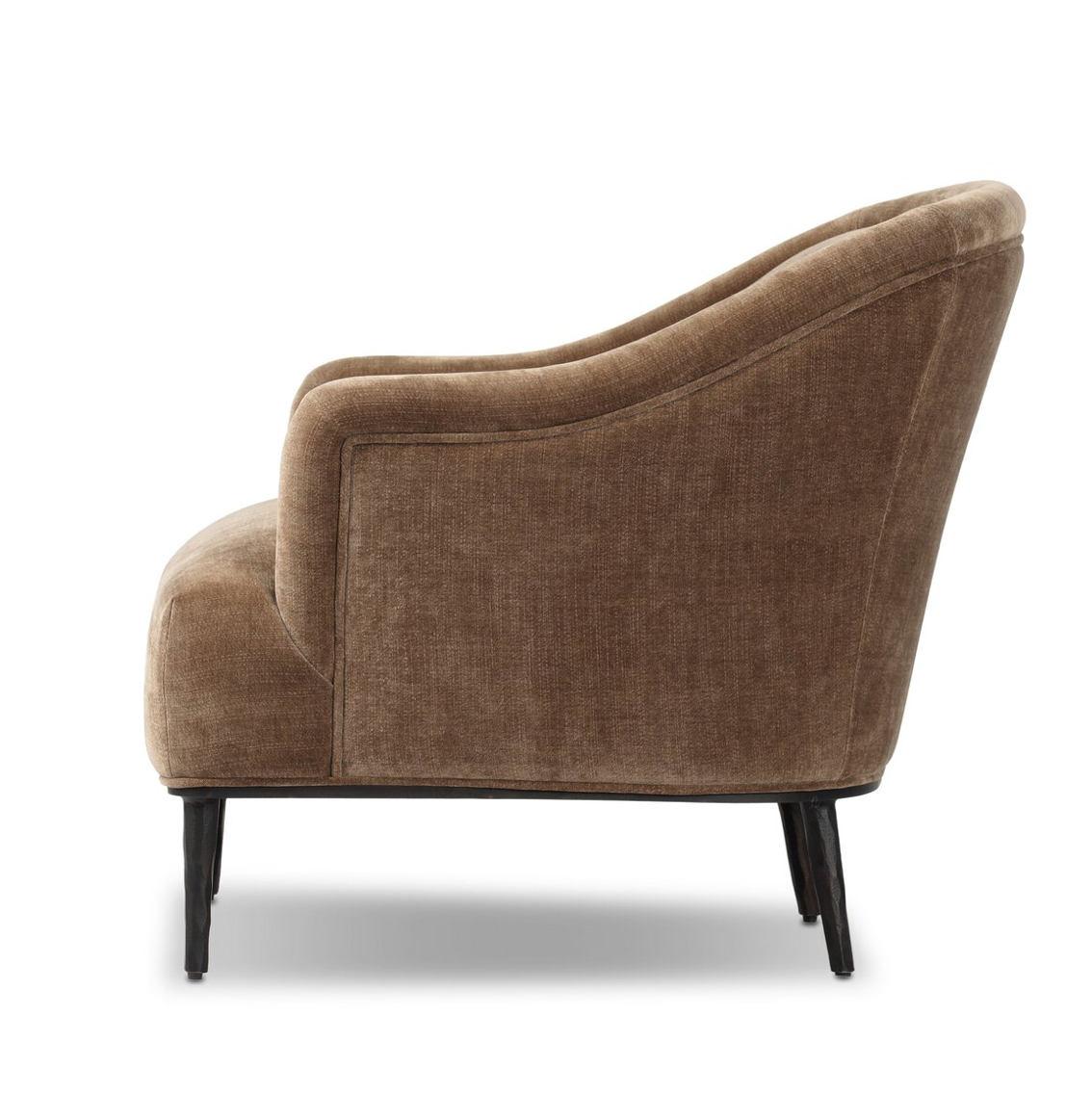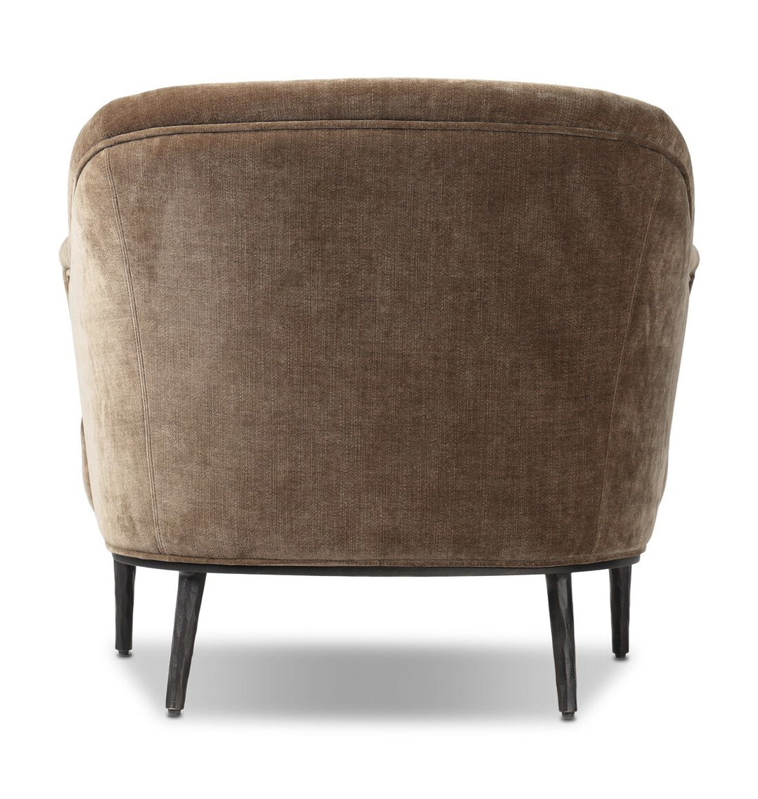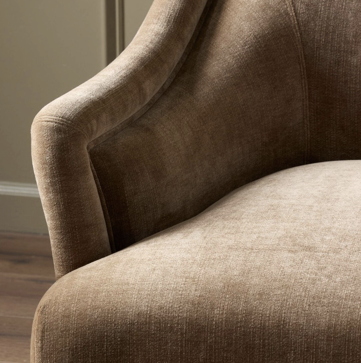 With elements of past eras at play, this updated Deco chair features a rounded back, sloped arms and a dramatic channel. The iron base and tapered legs support the cushiony seating — built with spring suspensions for long-lasting comfort. Performance fabrics are specially created to withstand spills, stains, high traffic and wear, ensuring long-term comfort and unmatched durability.