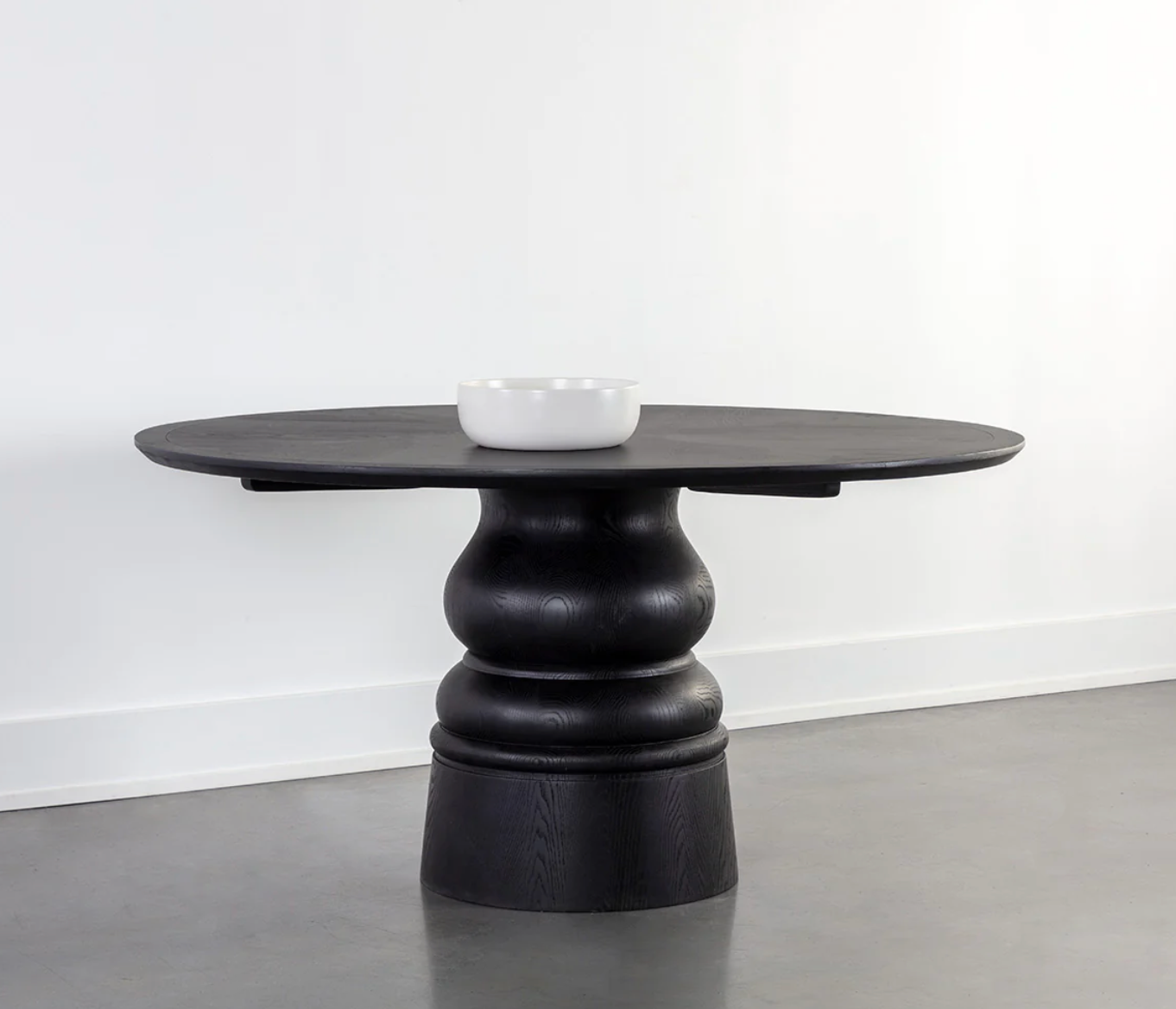Embrace the modern farmhouse look with the Quintin Dining Table. A sculpted base made from solid oak wood lends a vintage flair to the transitional form of the piece. The oak veneer top is carefully selected for its distinctive graining, accentuating the natural characteristics of this material. As wood is an organic, porous material, these pieces will contain natural variation of texture and may also exhibit fine indentations and cracks. Wood pieces will also display a disparity of colour and grain, and visible knots and burls that add to the character of each piece. With refined craftsmanship, this design was brought to life by skilled local artisans. Due to the nature of handcraftsmanship, unique imperfections such as fissures, markings and variations in colour and shape are welcomed and appreciated characteristics for a truly one-of-a-kind piece.