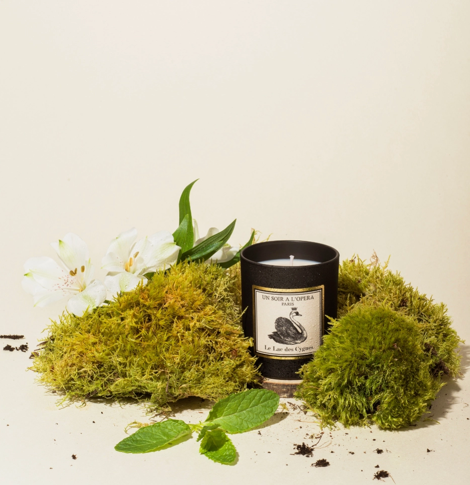 An original candle, 100% plant-based, made in France. The Swan Lake candle invites you on an olfactory journey into the heart of the forest, allowing yourself to be led by ballerinas transformed into swans and follow the white tutus to the edge of the lake.