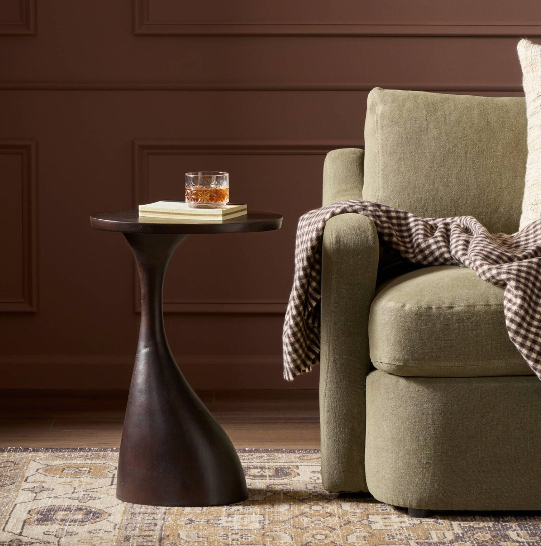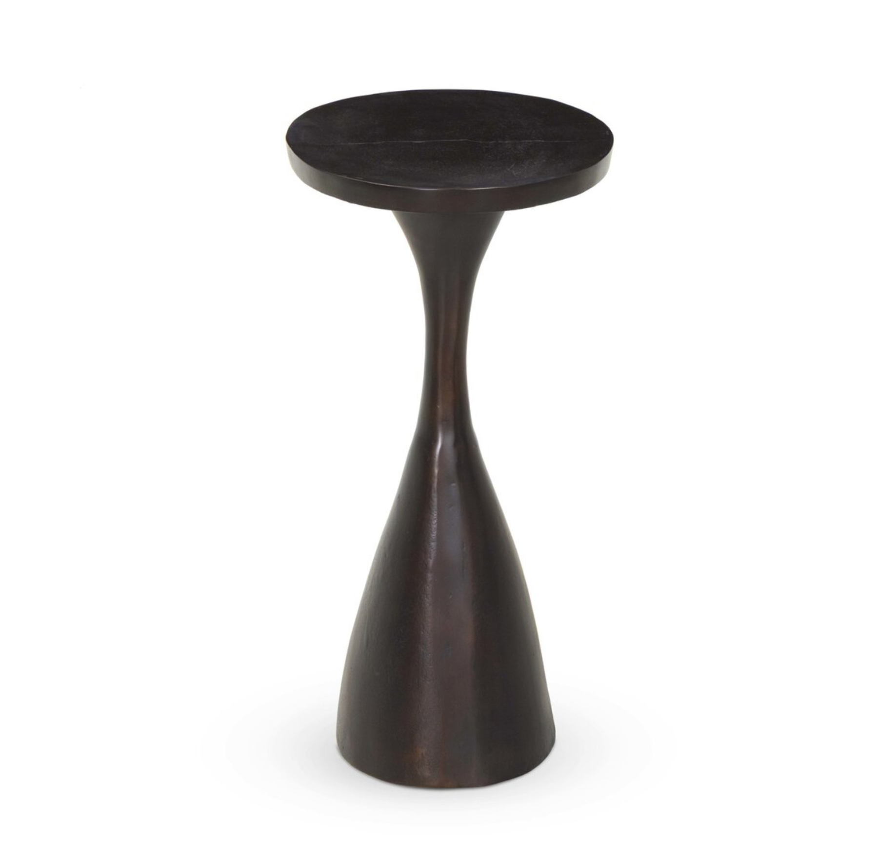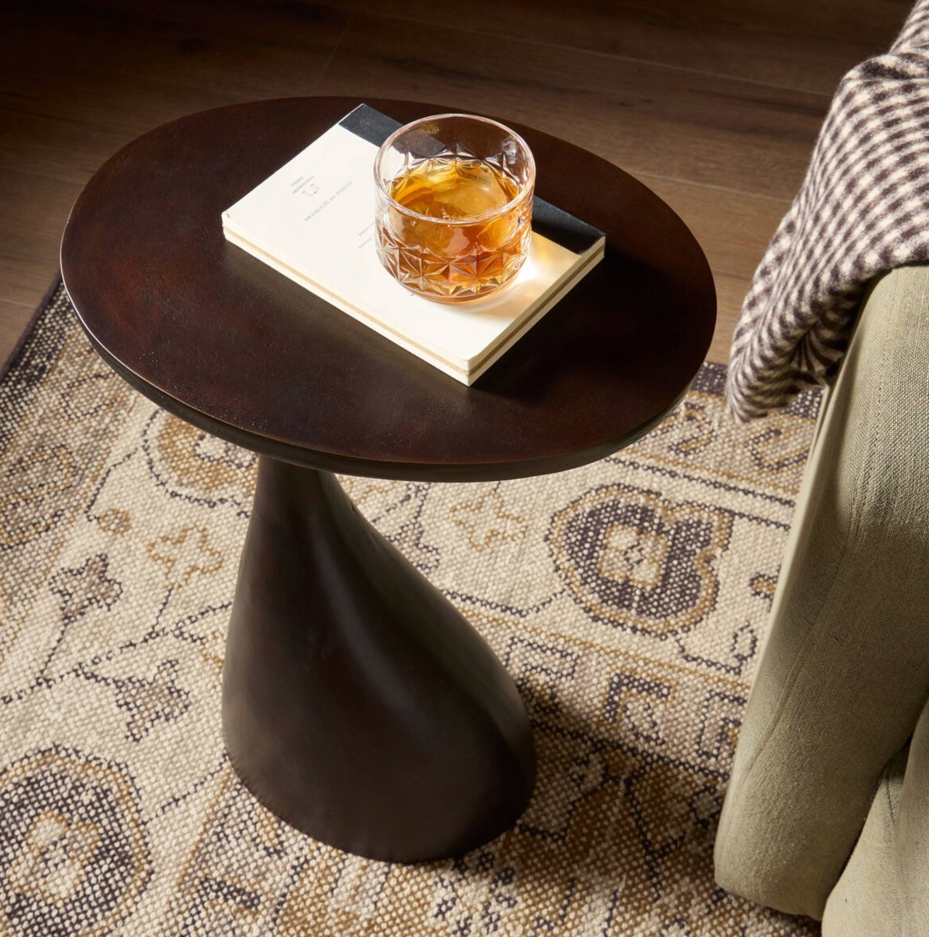 Make a shapely statement anywhere, with a cast aluminum end table finished in an antique rust.