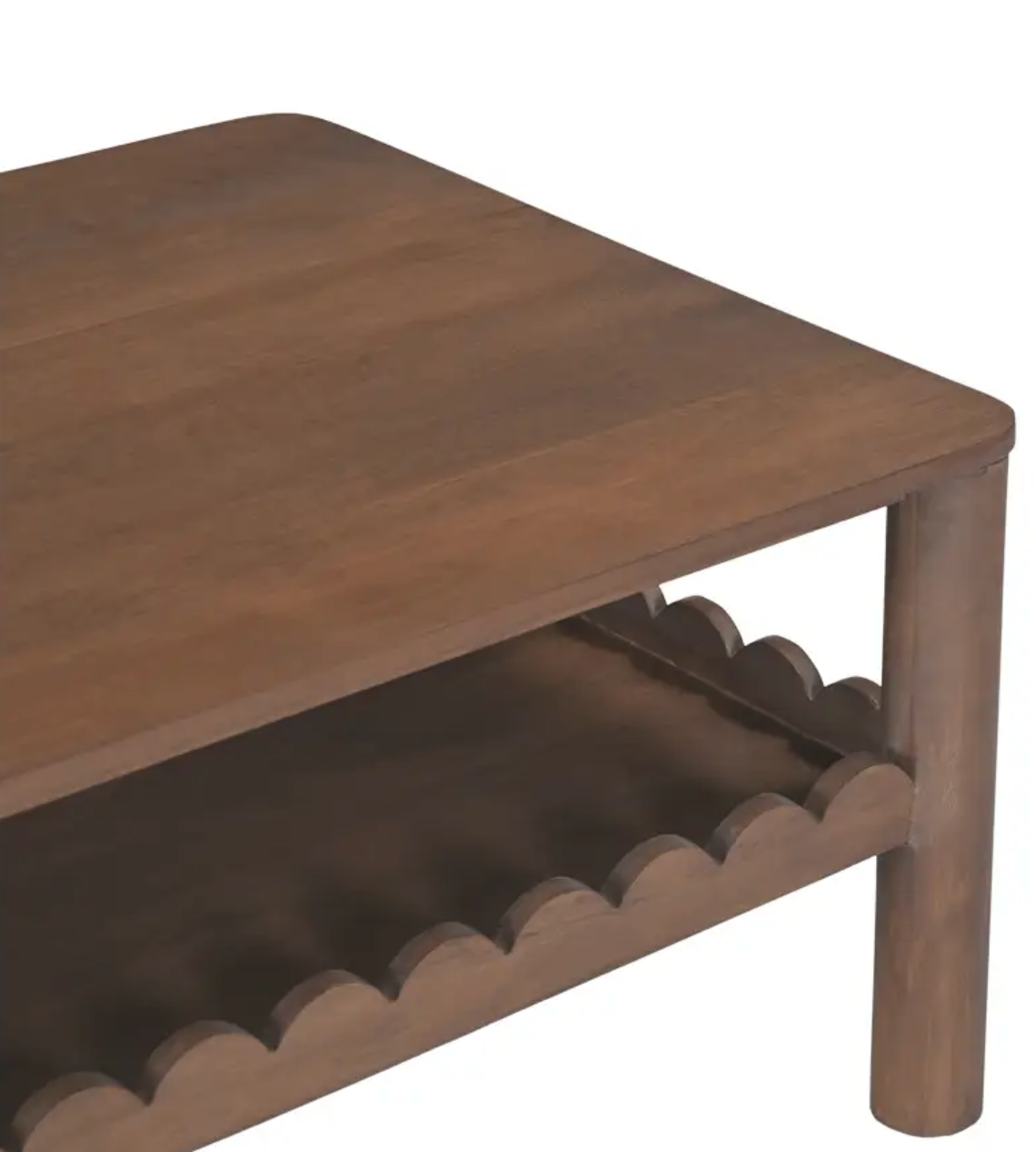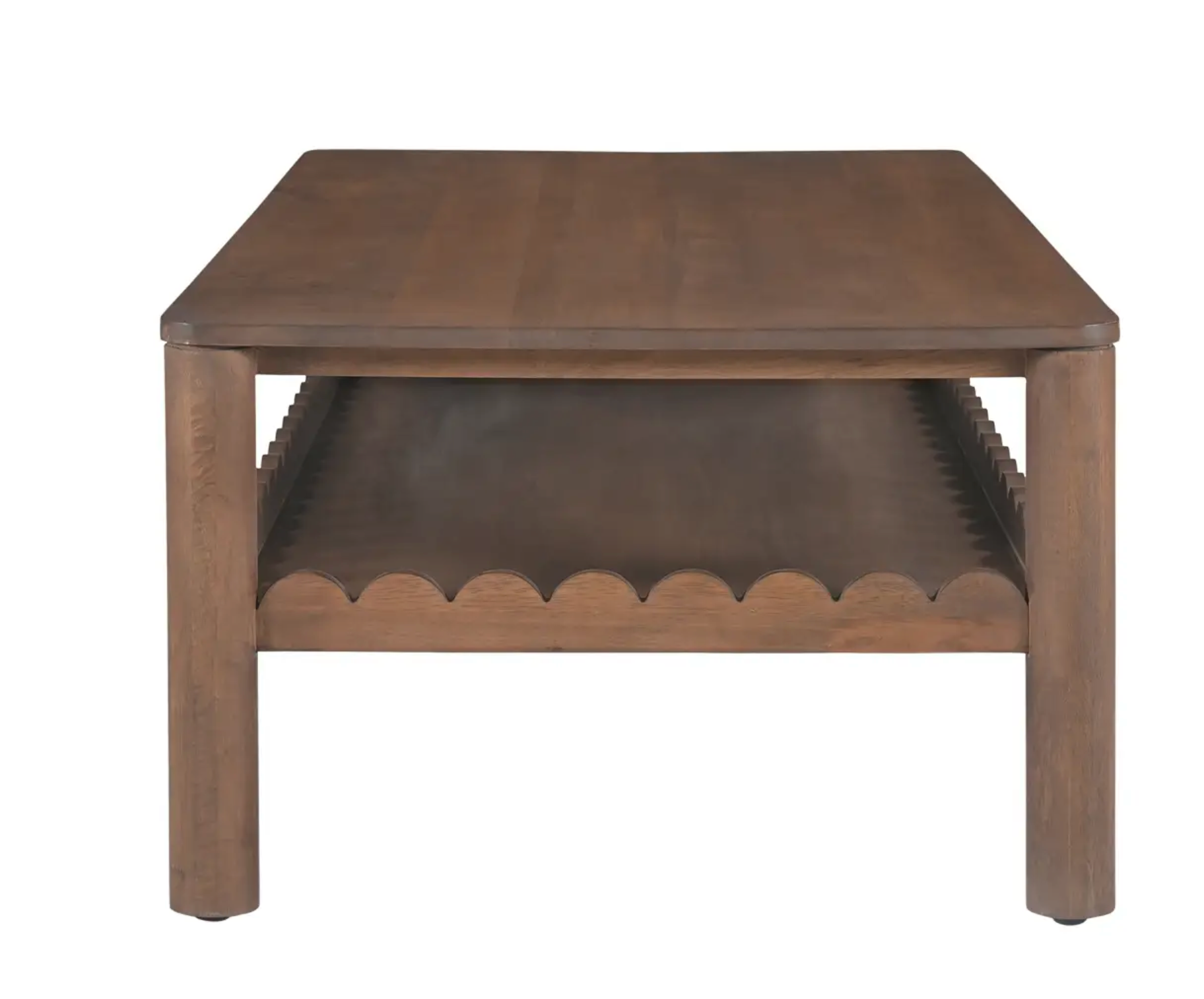 Modern aesthetics effortlessly blend with the refined simplicity of traditional Shaker design in the Wilton coffee table. Meticulously crafted, its elegant form is defined by sleek, geometric curves that add a captivating touch of modernity. The post legs stand as pillars of strength, grounding the coffee table with their understated presence. A showcase of intricate scalloped edge details to the face of the exposed lower shelf lends a timeless charm reminiscent of classical influences.