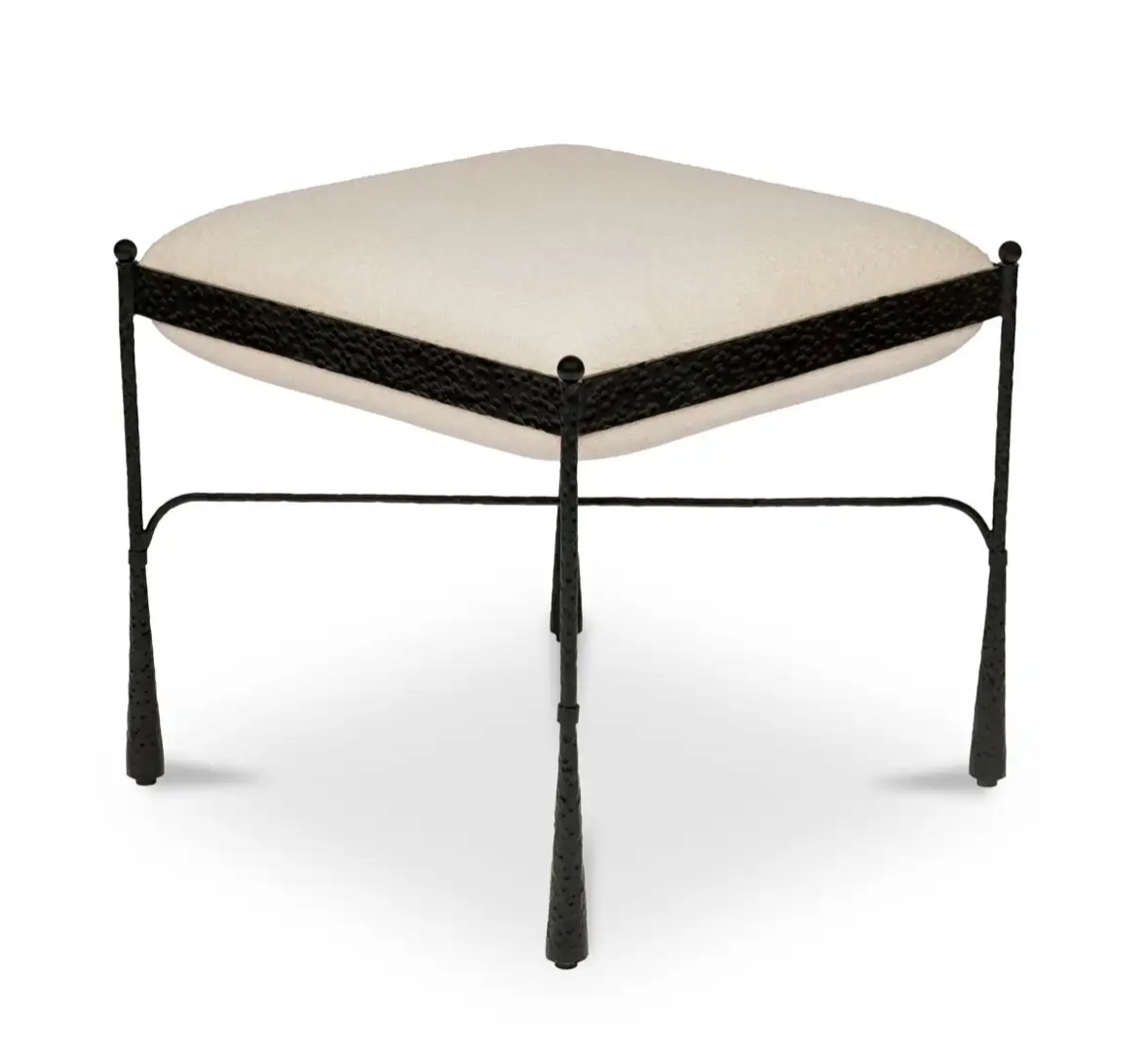 Flared legs. Nailed the landing. Agnes brings a refined kind of flair. Its exposed iron frame feels sculptural and grounded, while the flared legs and finial detailing nod to vintage forms. The seat is finished in a soft, looped weave that adds texture and contrast without stealing the spotlight. It’s equal parts structure and softness—a thoughtful mix of form, function, and just the right amount of flourish.