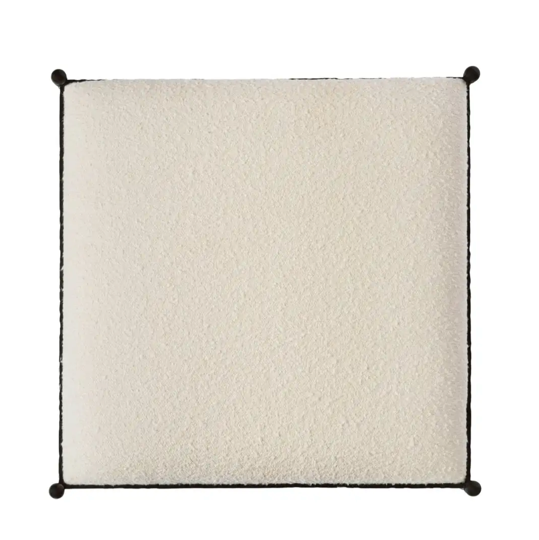 Mixed Materials: The plush, looped-weave polyester seat in a soft, boucle-like texture provides a contrast to the hard iron frame, creating an intriguing interplay of materials and textures.