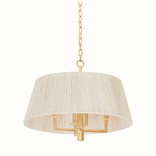 French Riviera finesse meets mid-century modernism in the Azure pendant. The large drum shade is wrapped entirely in Bleached Abaca cord, allowing light to shine through. Finished in Vintage Gold Leaf, the angular frame takes its cues from vintage iron lighting as it peaks out from under the shade. Available in two sizes with either 4 or 6 lights, Azar provides a sophisticated lighting experience. *Due to the one-of-a-kind nature of the medium, exact colors and patterns may vary slightly from the image shown.