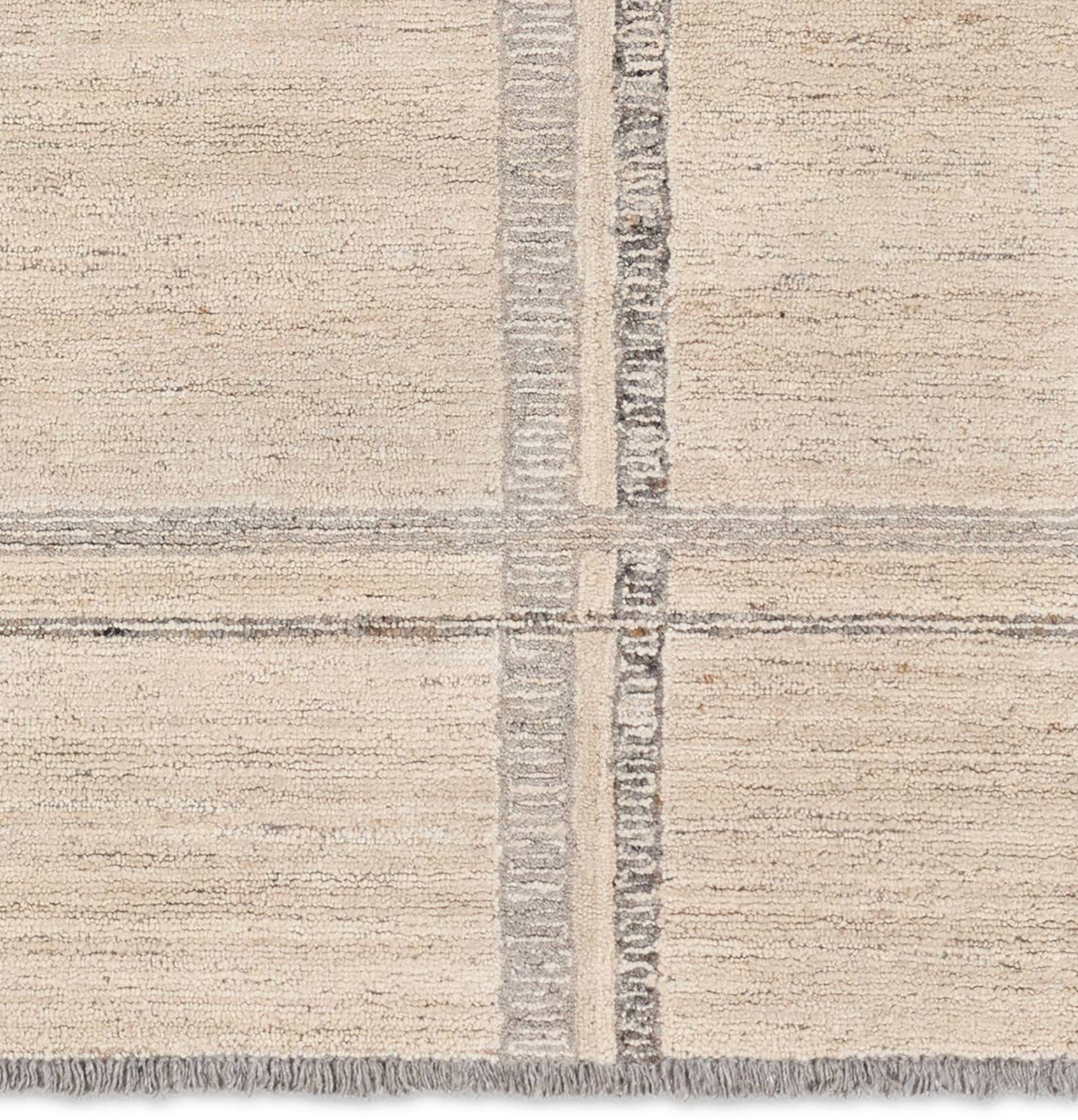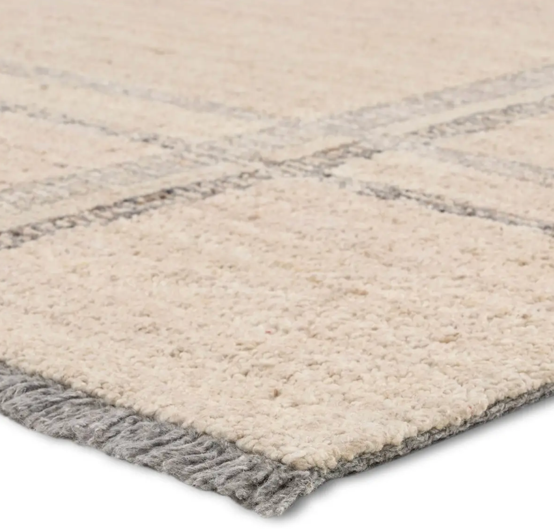 The hand-tufted Hadi collection introduces fresh looks inspired by modern Moroccan patterns and neutral colorways. The Bilal design features a trellis with geometric detailing, encompassing North African styles in cream and gray hues. Short, gray fringe and 100% wool pile adds to the global appeal. This rug is naturally stain-resistant and works best in low traffic areas of the home such as bedrooms, formal living rooms, formal dining rooms, and sitting rooms.