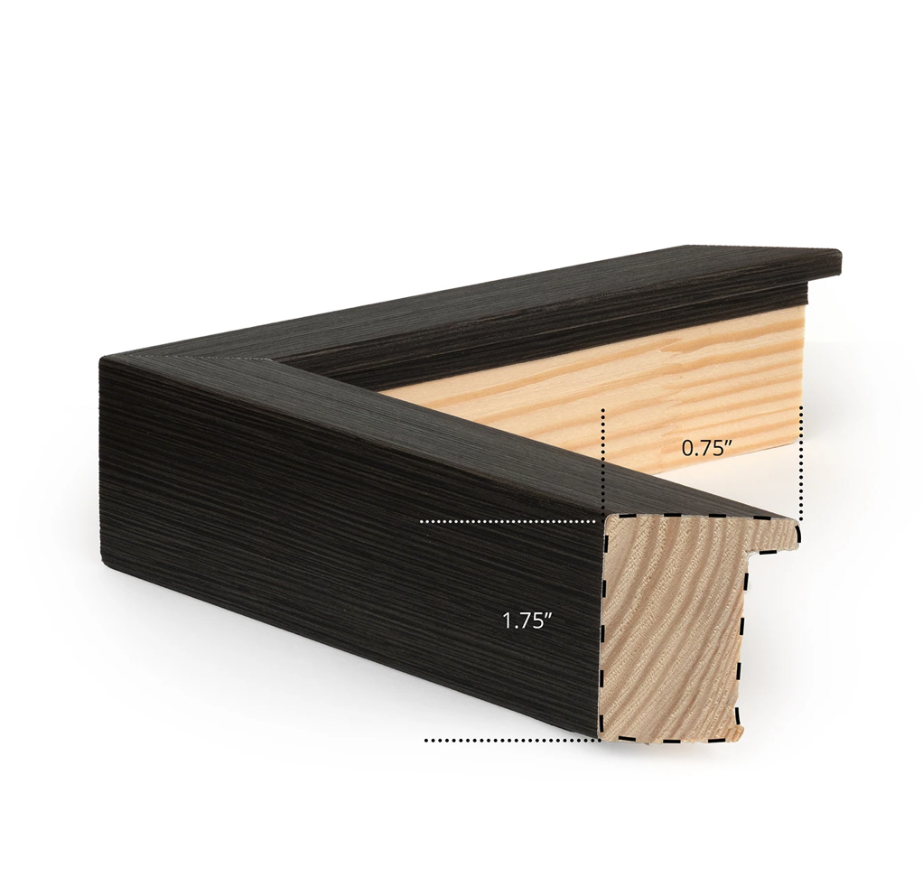 Ellsworth Kelly, one of America’s great abstract expressionists, inspired this minimal, mid-century piece. In its new black and blush colour combination, it perfectly compliments mid-century decor. Framed in a raw finished charcoal profile.
