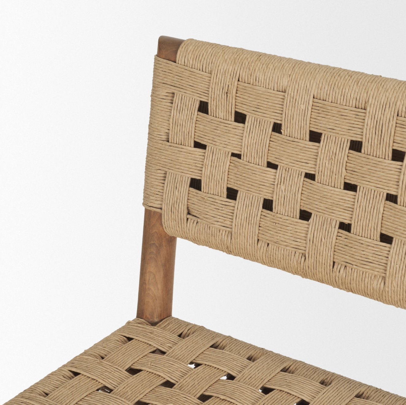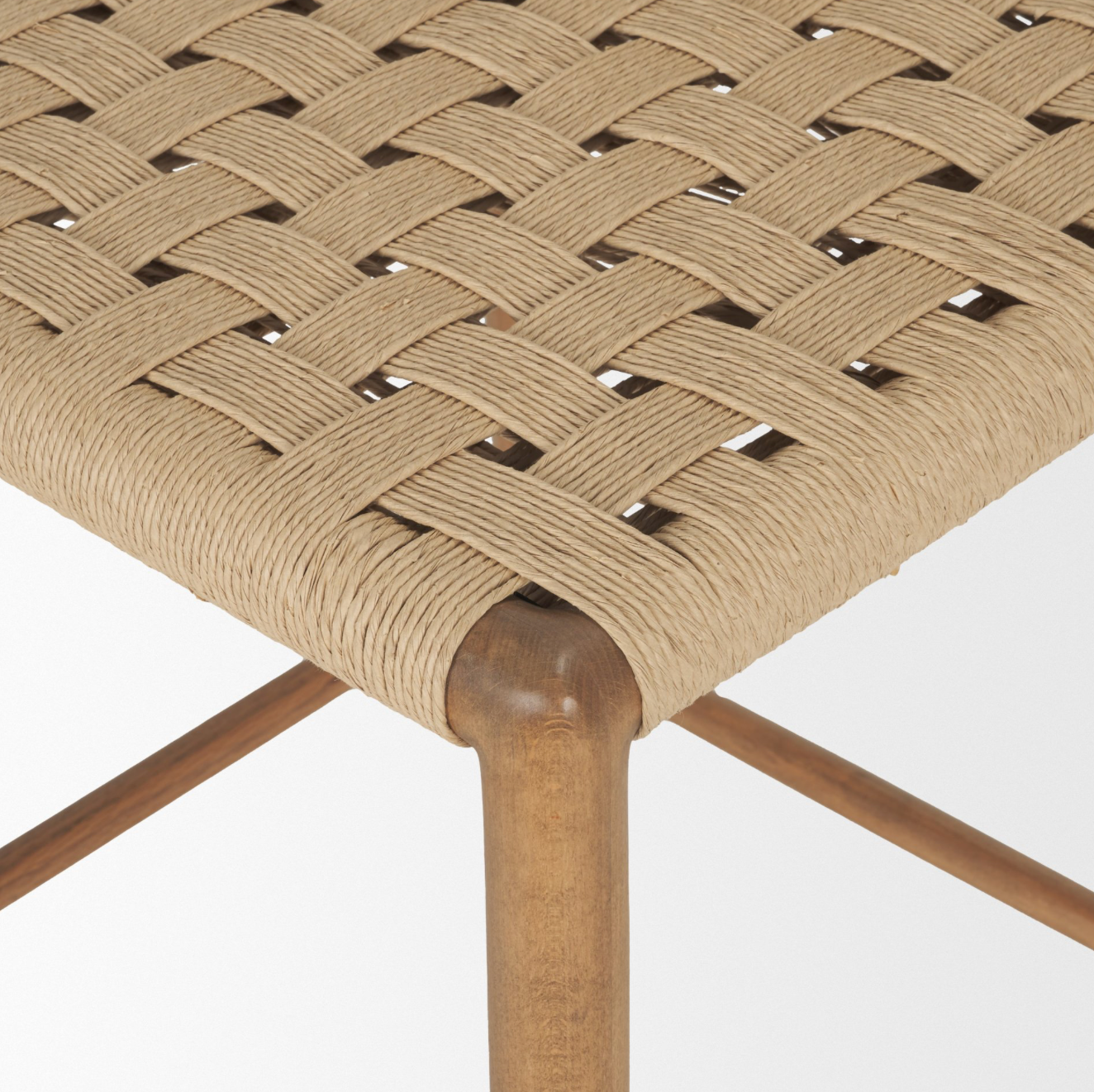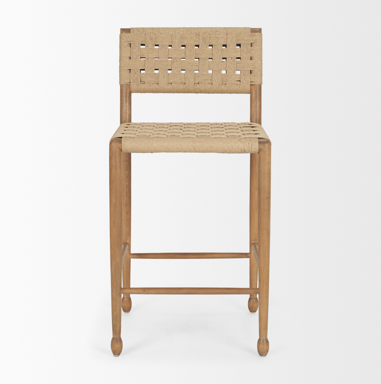 The Brindle Counter Stool is crafted from durable natural paper rope, featuring a double-weave seat and backrest on a sturdy brown wooden frame.