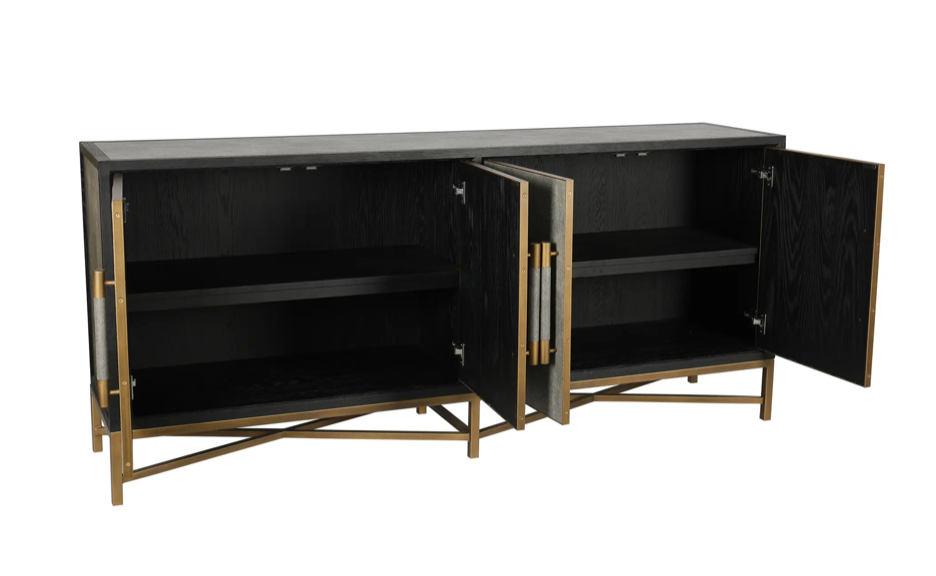 The Carlos Sideboard is a classy affair of solid oak. Brass legs and handles instill this piece of furniture with a feeling of elegance and warmth. The cabinet is finished off with a matte lacquer for an understated look because the Carlos speaks for itself.