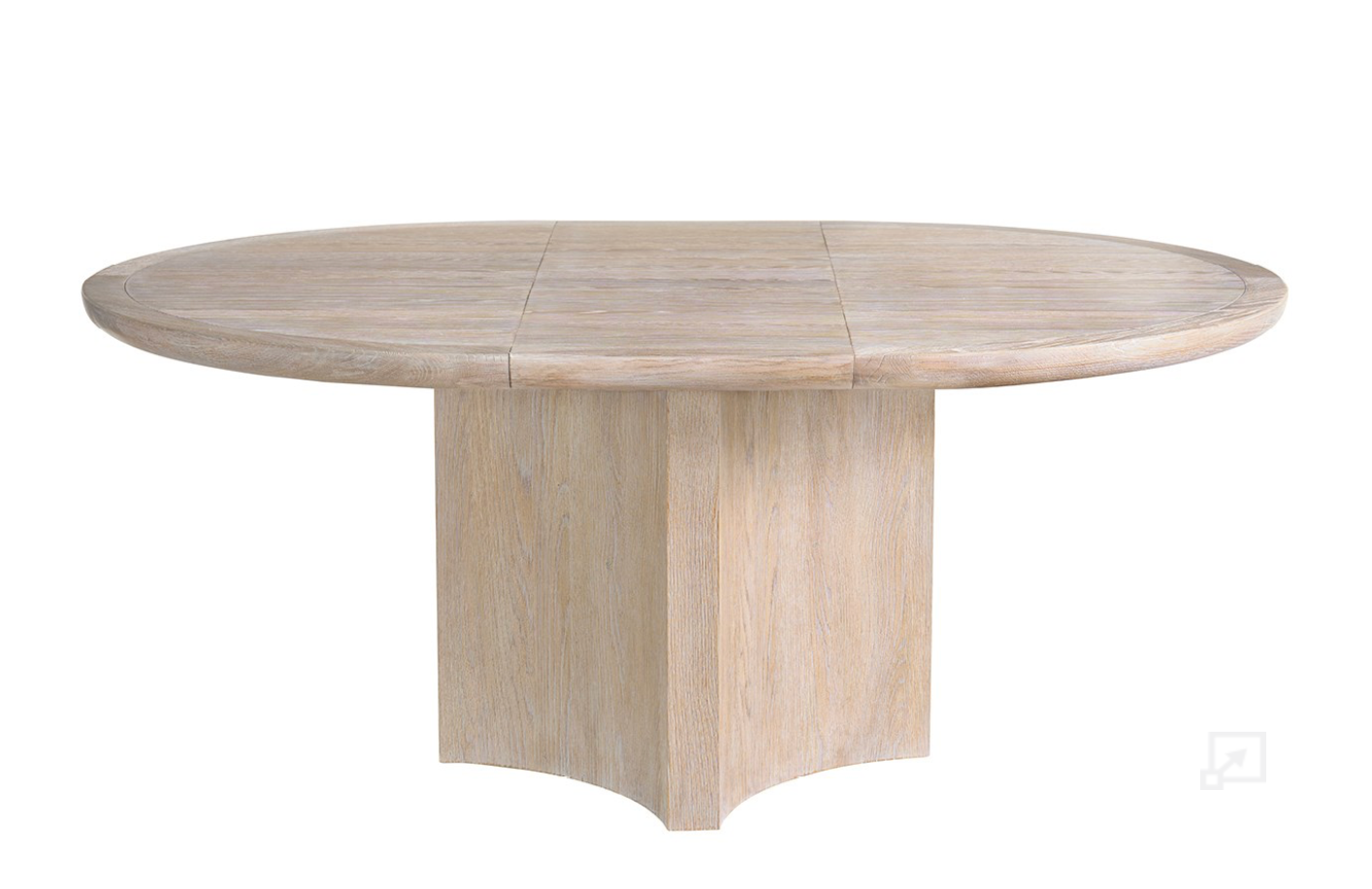 The Destin Round Dining Table creates an intimate and inviting dining experience. Its light, welcoming finish enhances the classic round silhouette, fostering a warm and welcoming atmosphere for gatherings and meals.