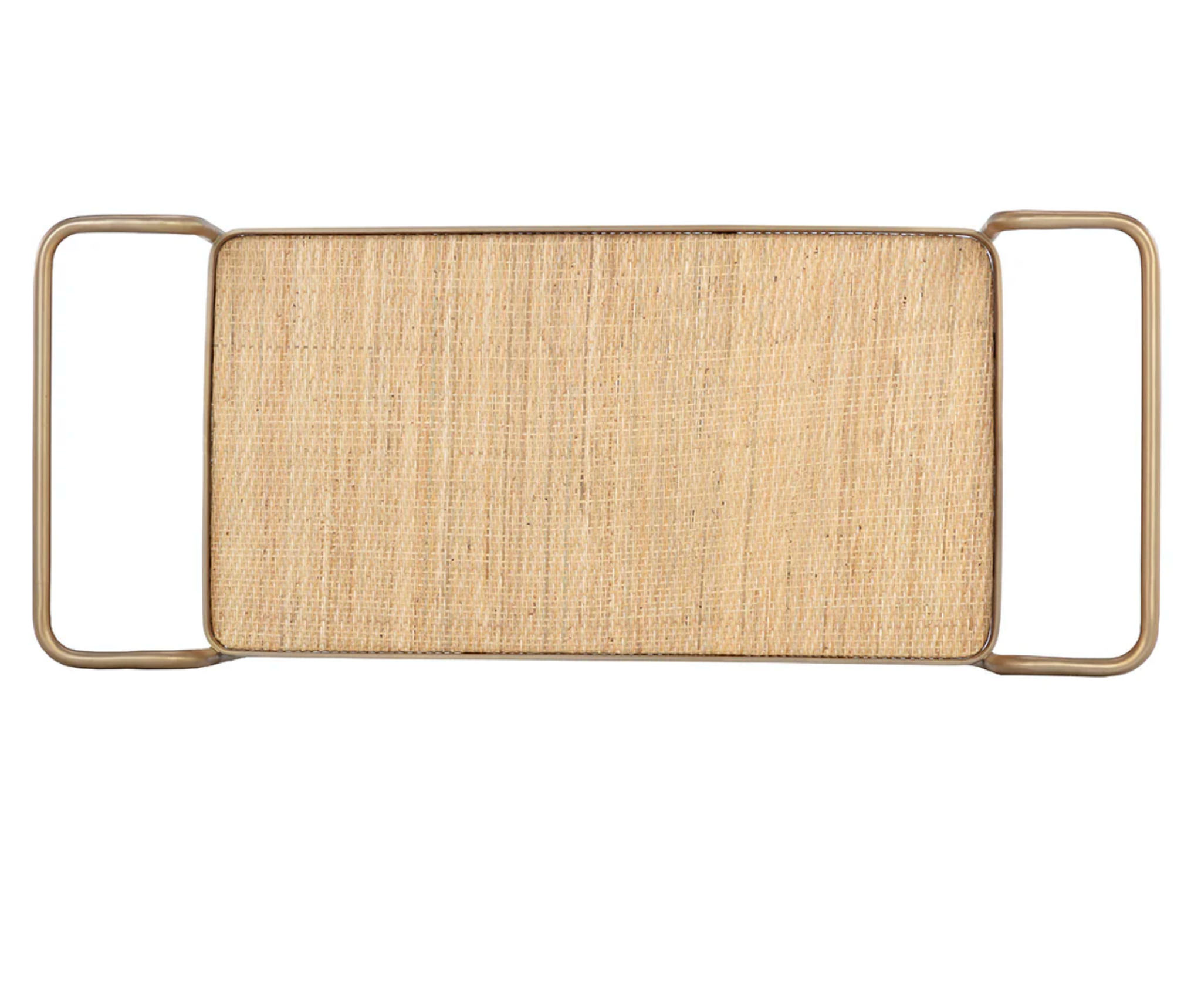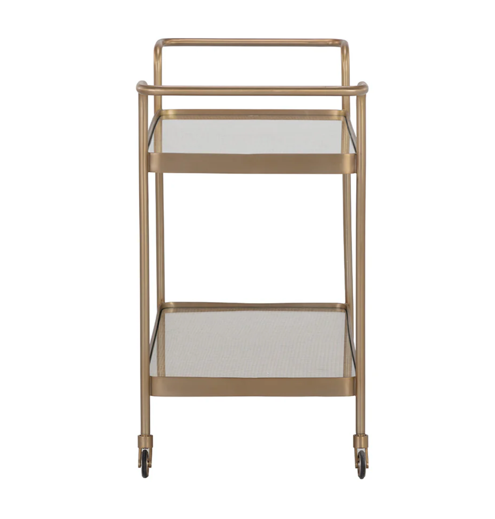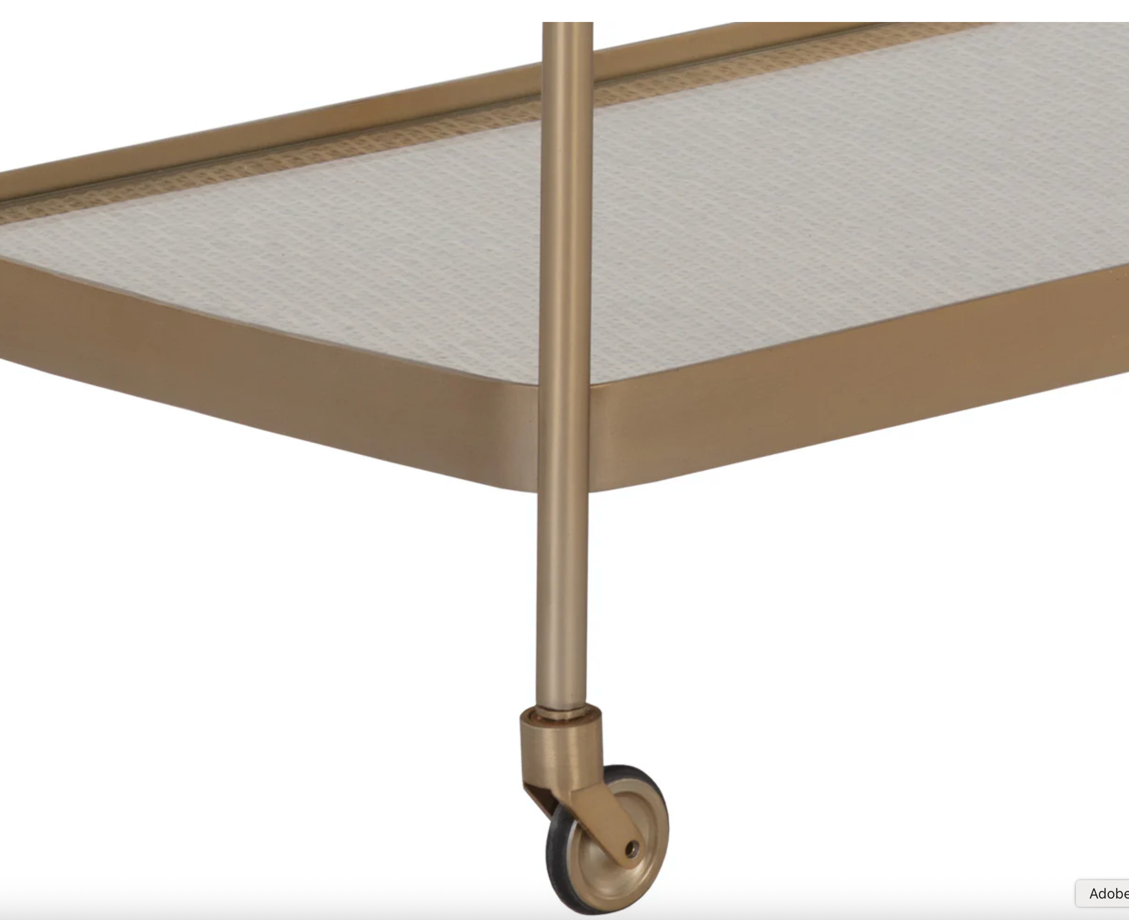 The Durva Bar Cart features a classic silhouette made from mixed materials. Clear tempered glass is placed on top of two natural rattan shelves to give the piece a relaxing coastal feel. Made in India. With refined craftsmanship, this design was brought to life by skilled local artisans. Due to the nature of handcraftsmanship, unique imperfections such as fissures, markings and variations in colour and shape are welcomed and appreciated characteristics for a truly one-of-a-kind piece.
