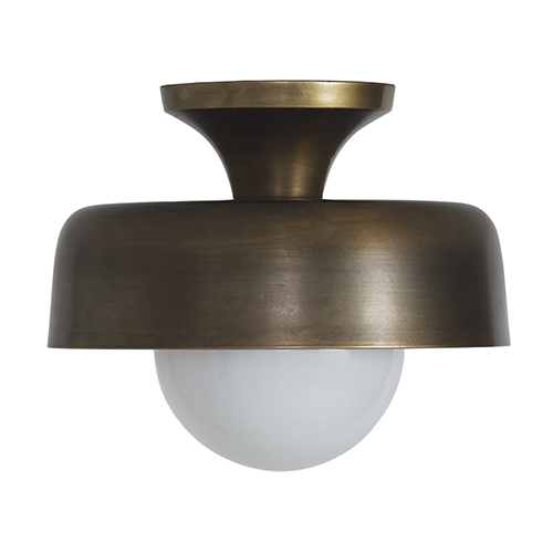 The Flared flush mount transforms any ceiling into an opportunity to make a modern statement. Its aged brass cast-aluminum frame is sleek and sculptural, while the etched glass globe adds subtle texture. Perfect for contemporary or minimalist interiors, this fixture delivers refined, architectural presence, turning a simple light source into a striking design element.