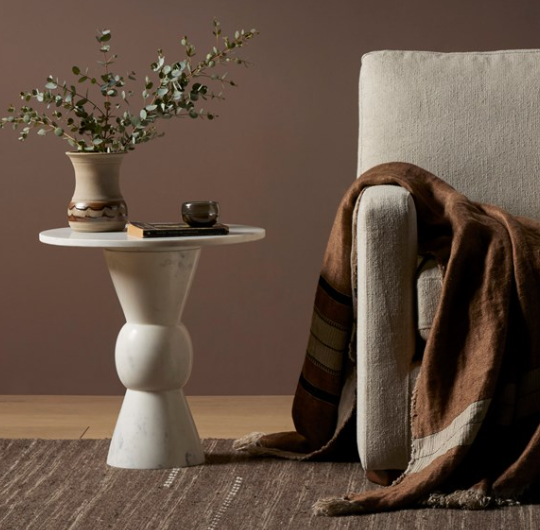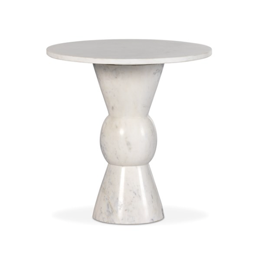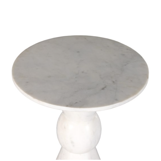 Solid white marble is turned and polished, shaping an elegant silhouette. Versatile in size to be styled just about anywhere.