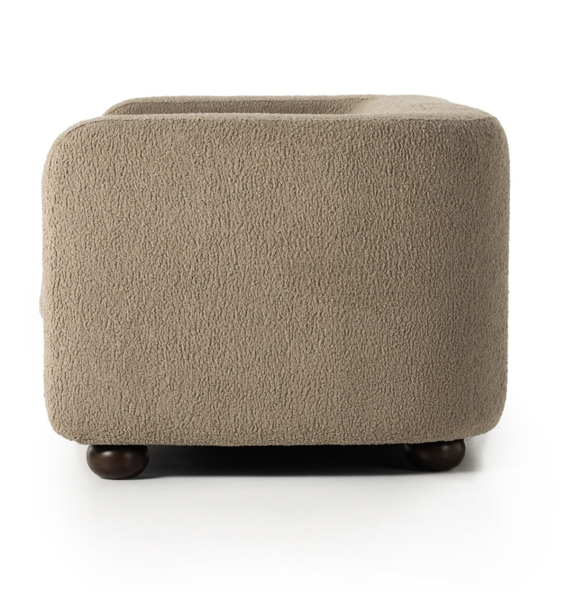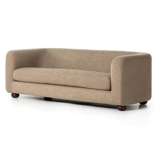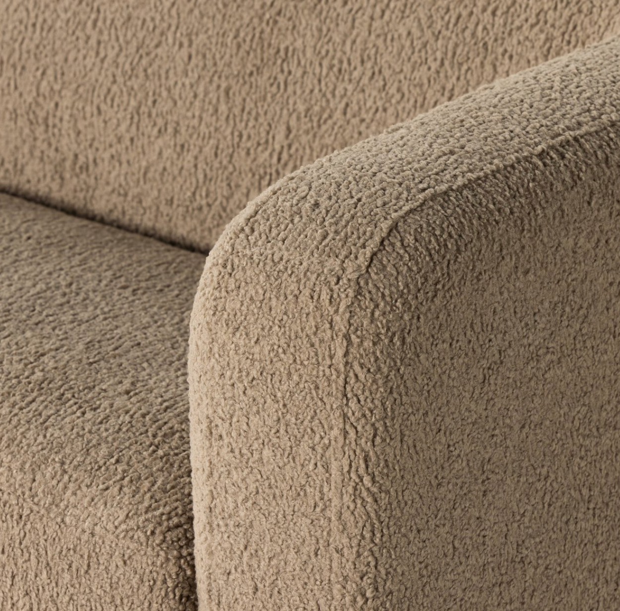 Inspired by vintage flea market finds, a faux shearling-upholstered sofa pairs a simple silhouette with clean, sweeping curves. Bench-seat cushioning plus feather-blend seating for total comfort.