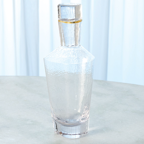 Mouth blown glass with hammered texture and handpainted gold rim.