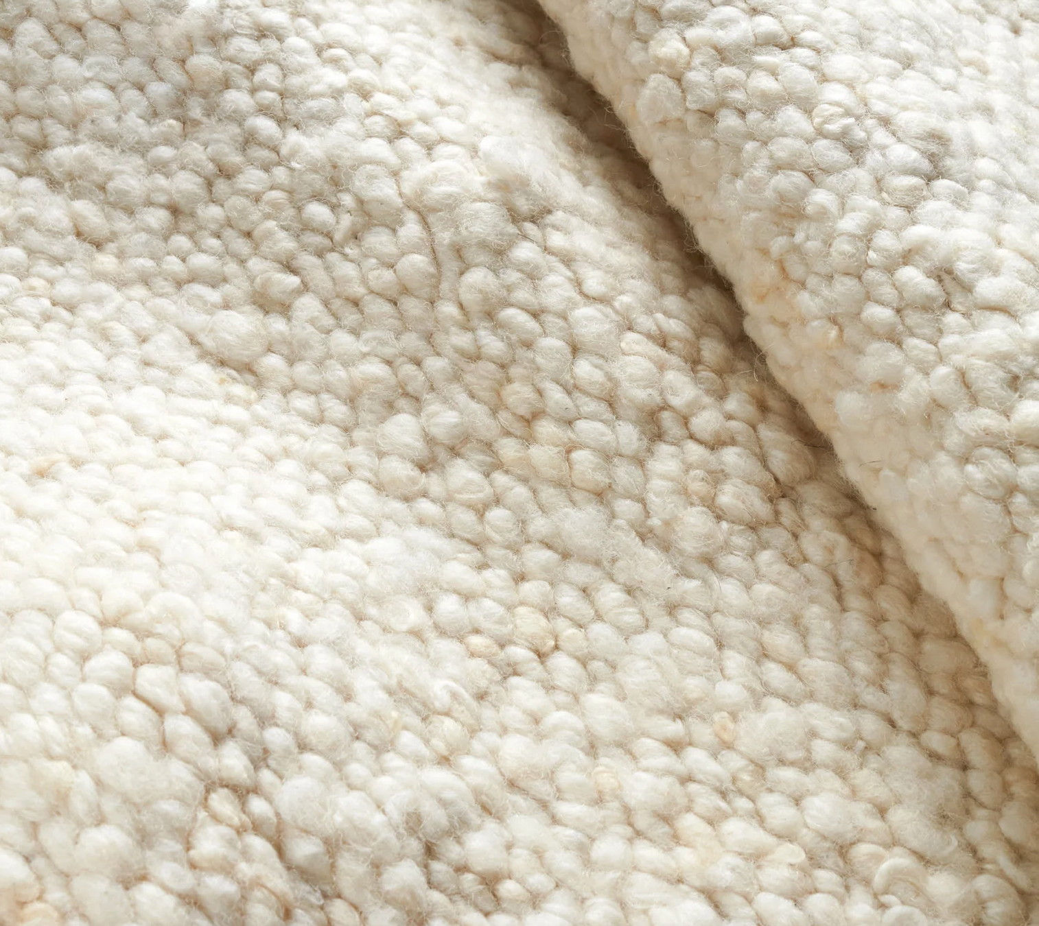 Create a warm, cozy foundation for your room with this chunky boucle rug handcrafted from the finest New Zealand wool. In a marbled, creamy hue, it’s soft and comfy underfoot