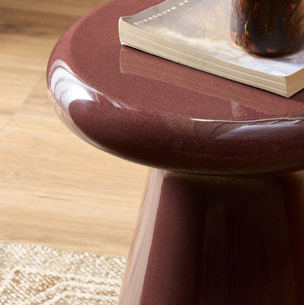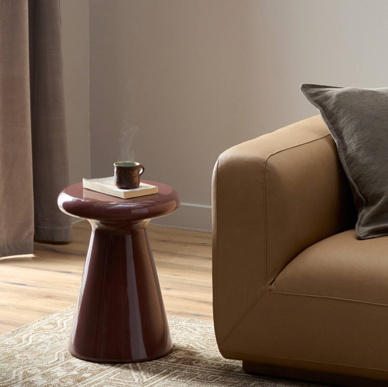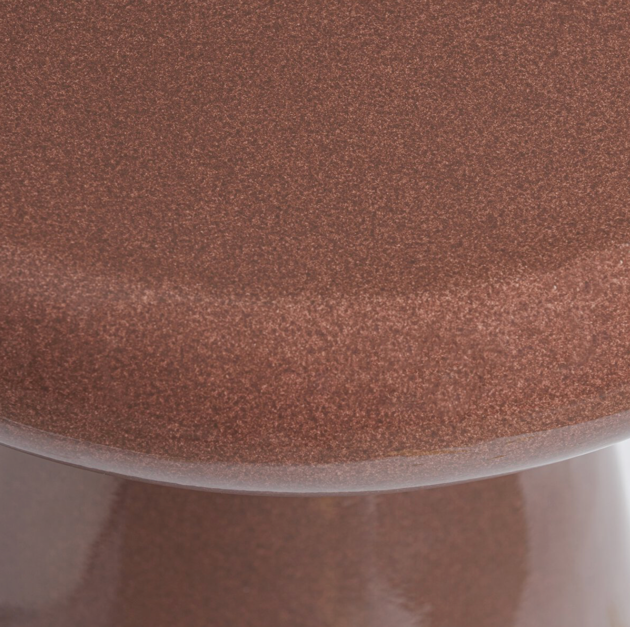 Add a surface — and pop of color — anywhere with a versatile end table of smooth, red-finished concrete. Its simple shape and smaller scale work into a range of spaces and styles with ease, while bullnose top and tapered base brings a shapely look to the whole piece.