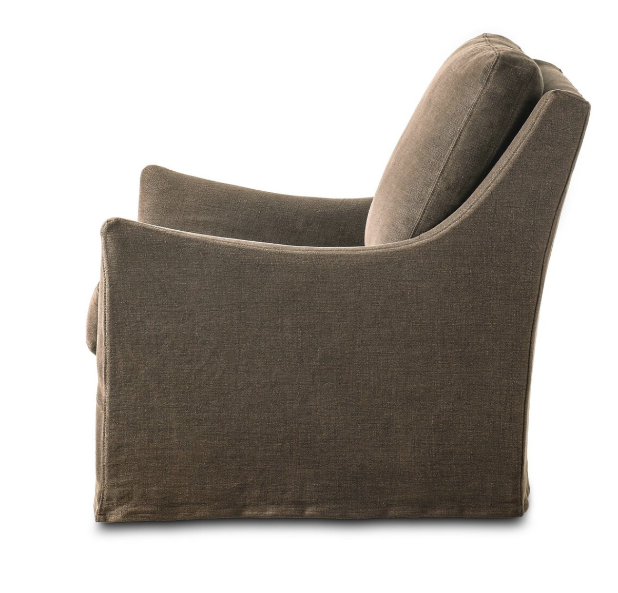 This relaxing glider chair is defined by slightly sloping, flared arms and a floor-length slipcover that's finished in a soft, tight weave for a traditional style.