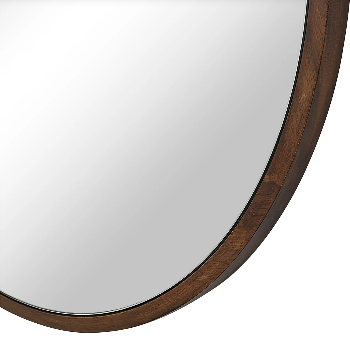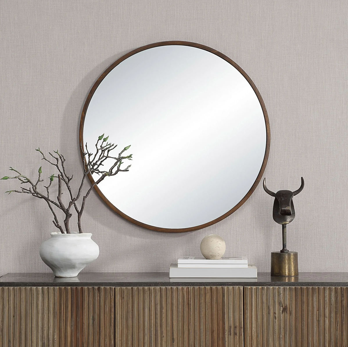If there was ever any doubt that the mid-century modern aesthetic is here to stay, this wall art mirror will make it very clear. Its painted walnut finish, versatile dimensions and simple design make it perfect for any number of settings. To elevate any home or office space, incorporate this great-looking round mirror in your decorating plan.