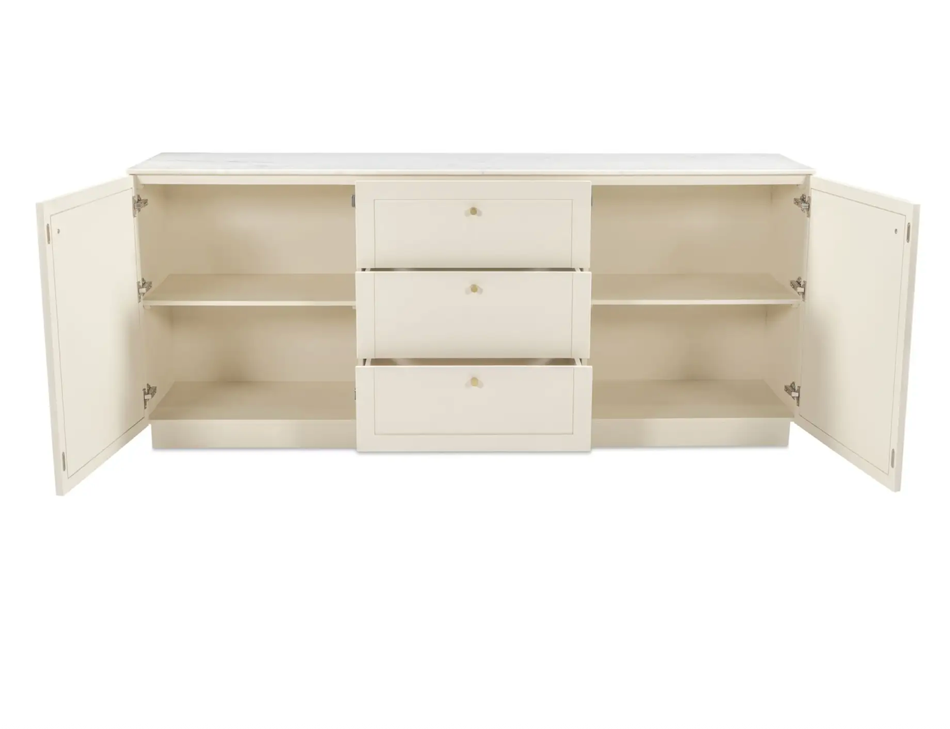 Smart Storage, Sorted: With two roomy doors and three soft-close drawers, the Nadine Sideboard has storage covered, organized, and within reach.