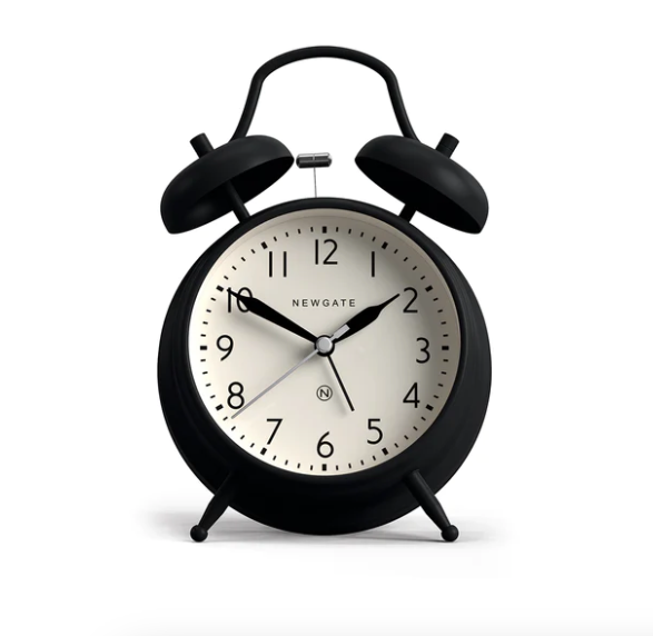 Our iconic twin-bell alarm clock in fresh new colours.. This classic style metal alarm clock has a contemporary dial and real moving hammer-and-bell action for a traditional wake-me-up.