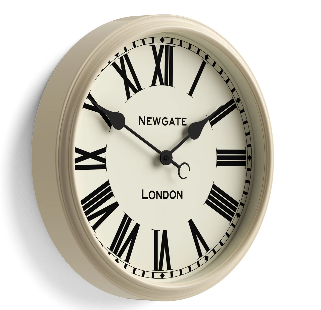 Our iconic and stylish classic metal clock in attractive case, with roman numeral dial, glass lens and metal hands.