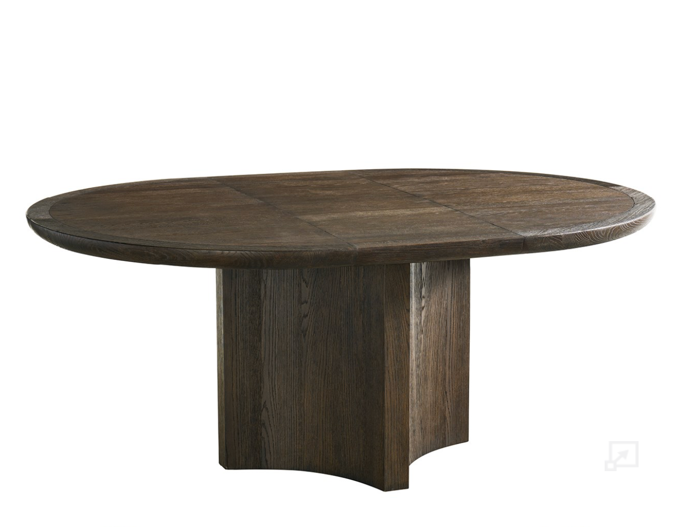The Sabre Round Dining Table creates an intimate and inviting dining experience. Its rich Sable finish enhances the classic round silhouette, fostering a warm and welcoming atmosphere for gatherings and meals.