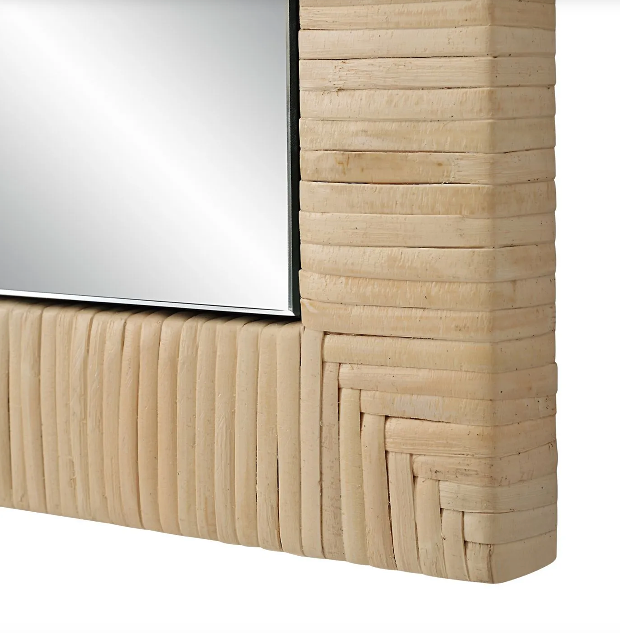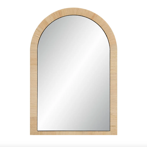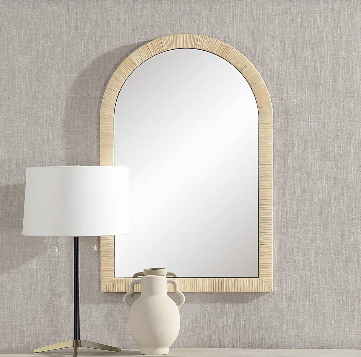 Enhance the ambiance of your living space with the Talia 36" Tall Arch Rectangular Mirror, crafted from high-quality and durable rattan frame. Its sophisticated arch shape evokes a timeless and elegant charm, making it a standout piece in any room. The mirror comes with a D-Ring hanging system, ensuring easy installation, and optimized for effortless vertical hanging. The tall arch and rectangular silhouette of this mirror creates a dramatic aesthetic that any room can benefit from. The natural wood finish of the frame complements any decor style while the extra-large size is perfect for creating an illusion of space and light in any room.